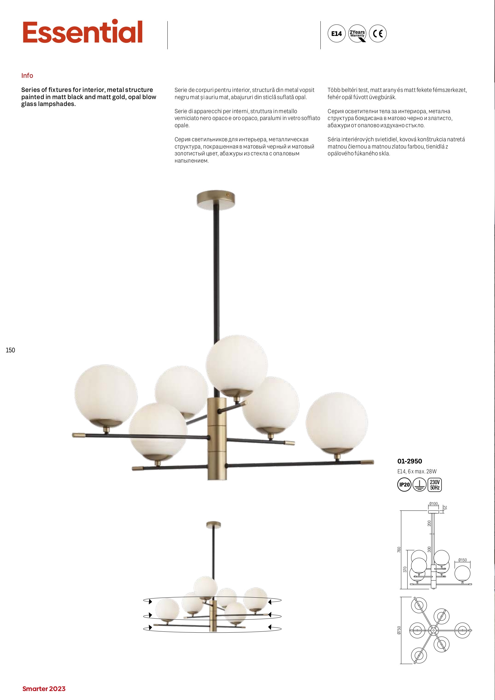 Магазини ОРИОН представят осветителното тяло 01-2950, което представлява полилей в съвременен стил. Лампата е част от категорията полилеи и е подходяща за различни помещения и пространства, като например всекидневна / хол, спалня, кухня, трапезария, офис.