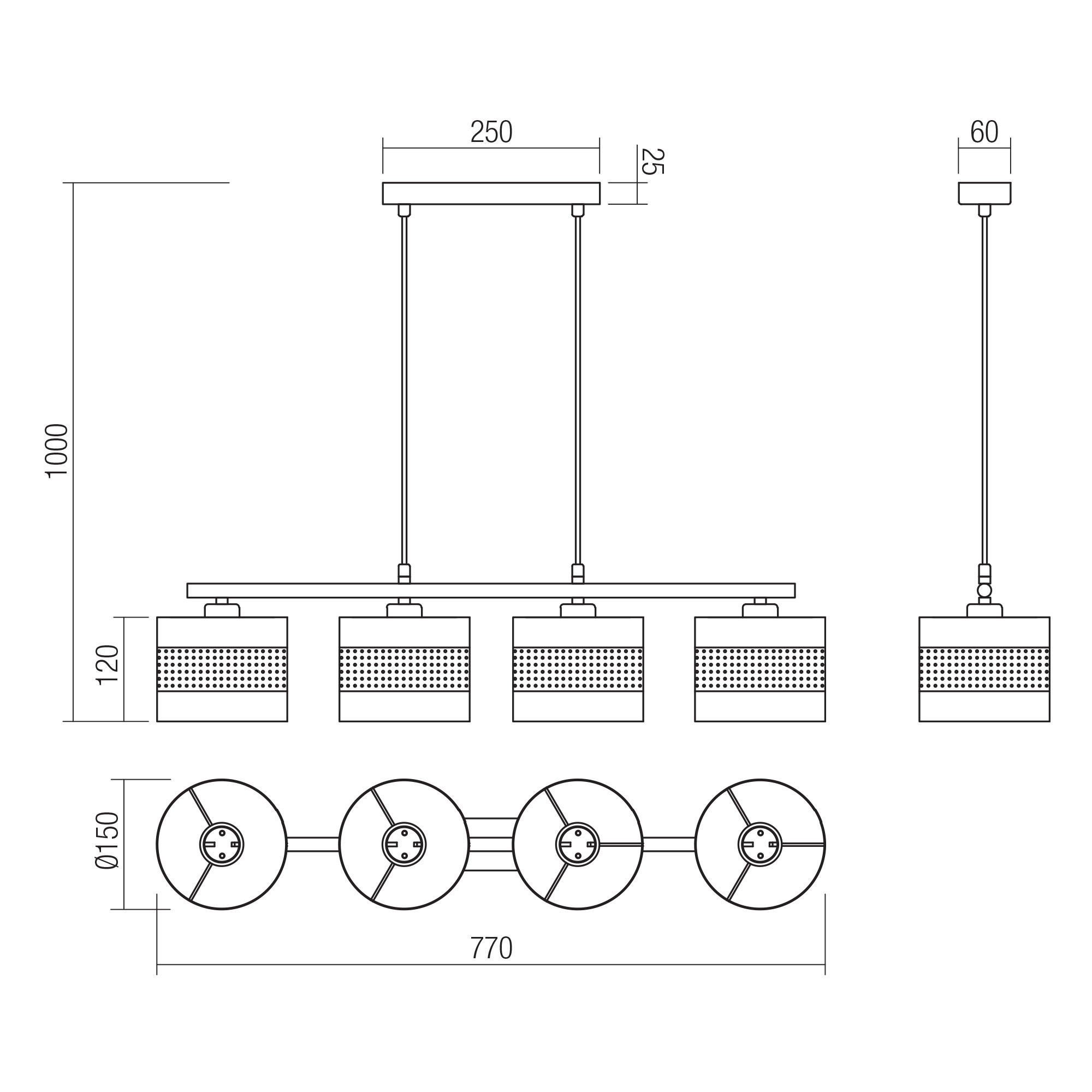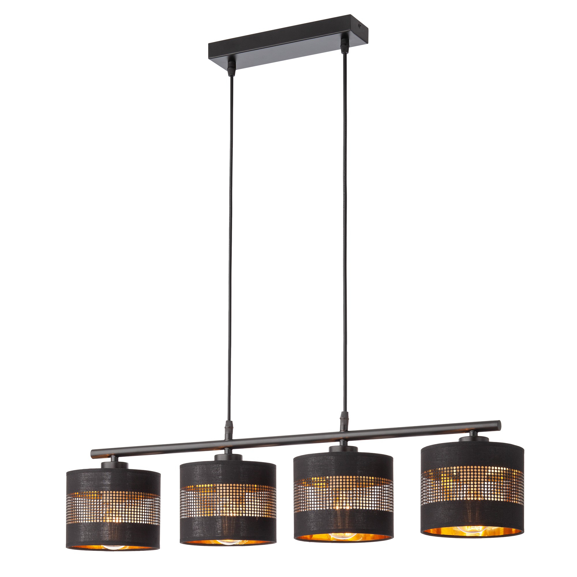 метал в цвят черен мат, текстилни абажури в черно върху PVC основа