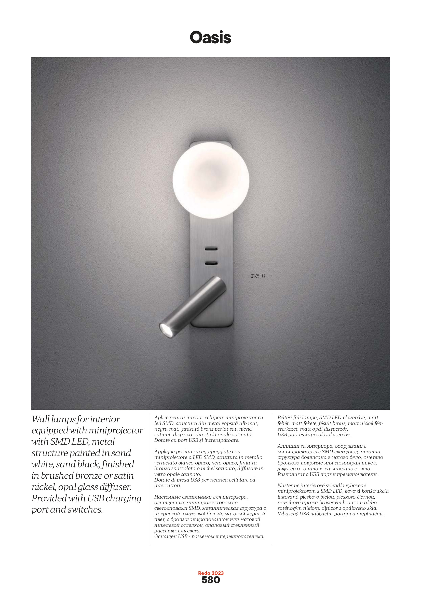 Осветителното тяло 01-2994 ще осигури комфорт и естетика във всяко помещение, в което се постави. Цялостната визия и дизайн на лампата и вложените в изработката й материали, като метал в цвят черен мат, дифузер от опалово сатенирано стъкло, спот лампа, USB порт 2A и ключове ON/OFF, ще допринесат за един неповторим стил. Благодарение на дългогодишния опит, качествените материали и строгия контрол на качеството на изработка на дизайнерската линия Redo Indoor на производителя Redo (Румъния), 01-2994 е на високо европейско ниво.