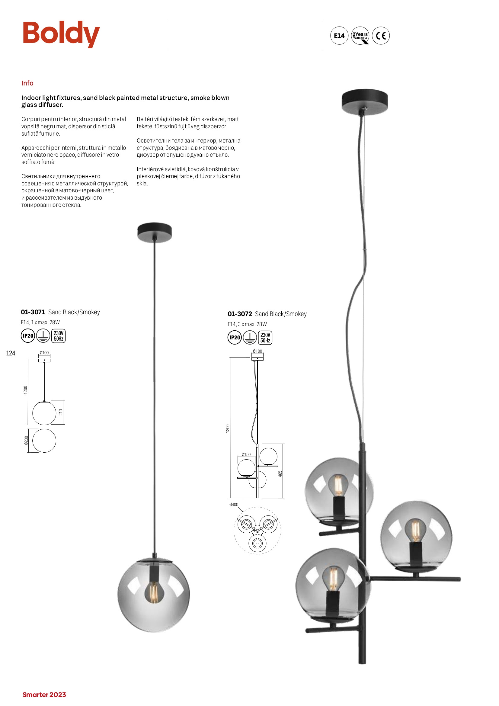 Осветителното тяло 01-3071 ще осигури комфорт и естетика във всяко помещение, в което се постави. Цялостната визия и дизайн на лампата и вложените в изработката й материали, като метал в матово черен цвят, дифузер от опушено духано стъкло, ще допринесат за един неповторим стил. Благодарение на дългогодишния опит, качествените материали и строгия контрол на качеството на изработка на дизайнерската линия Redo Smarter на производителя Redo (Румъния), 01-3071 е на високо европейско ниво.