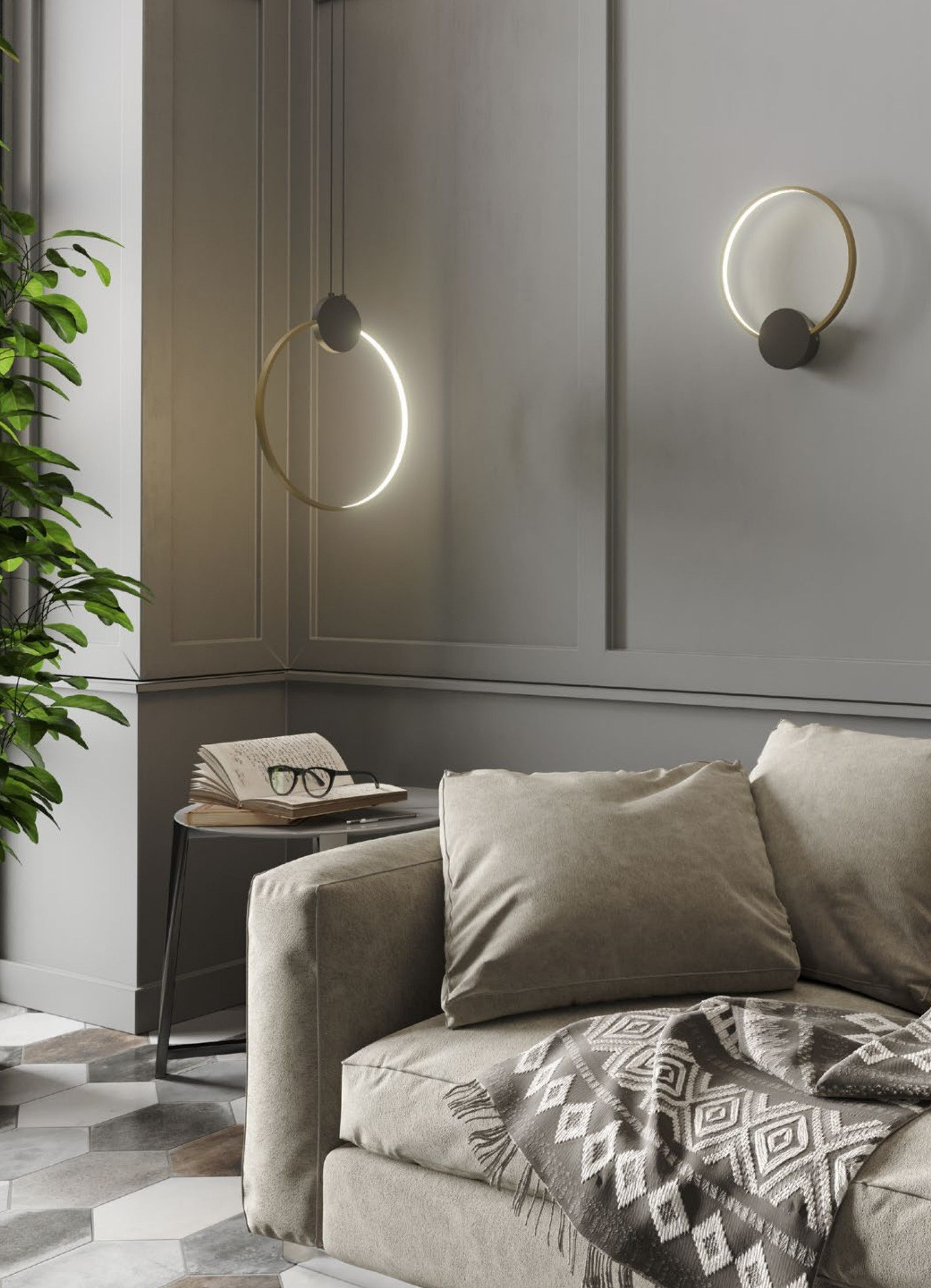 Осветителното тяло 01-3106 ще осигури комфорт и естетика във всяко помещение, в което се постави. Цялостната визия и дизайн на лампата и вложените в изработката й материали, като метал с електростатично нанесено покритие в черен цвят, метален тороид в цвят античен месинг отвън и матово бяло отвътре, ще допринесат за един неповторим стил. Благодарение на дългогодишния опит, качествените материали и строгия контрол на качеството на изработка на дизайнерската линия Redo Smarter на производителя Redo (Румъния), 01-3106 е на високо европейско ниво.