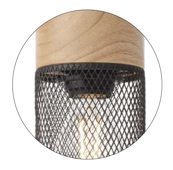 За стила и естетиката на интериора допринасят, както цялостната визия и дизайн на осветителното тяло, така и вложените от производителя в изработката висококачествени материали, като метал в матово черен цвят, елемент от естествено дърво.
