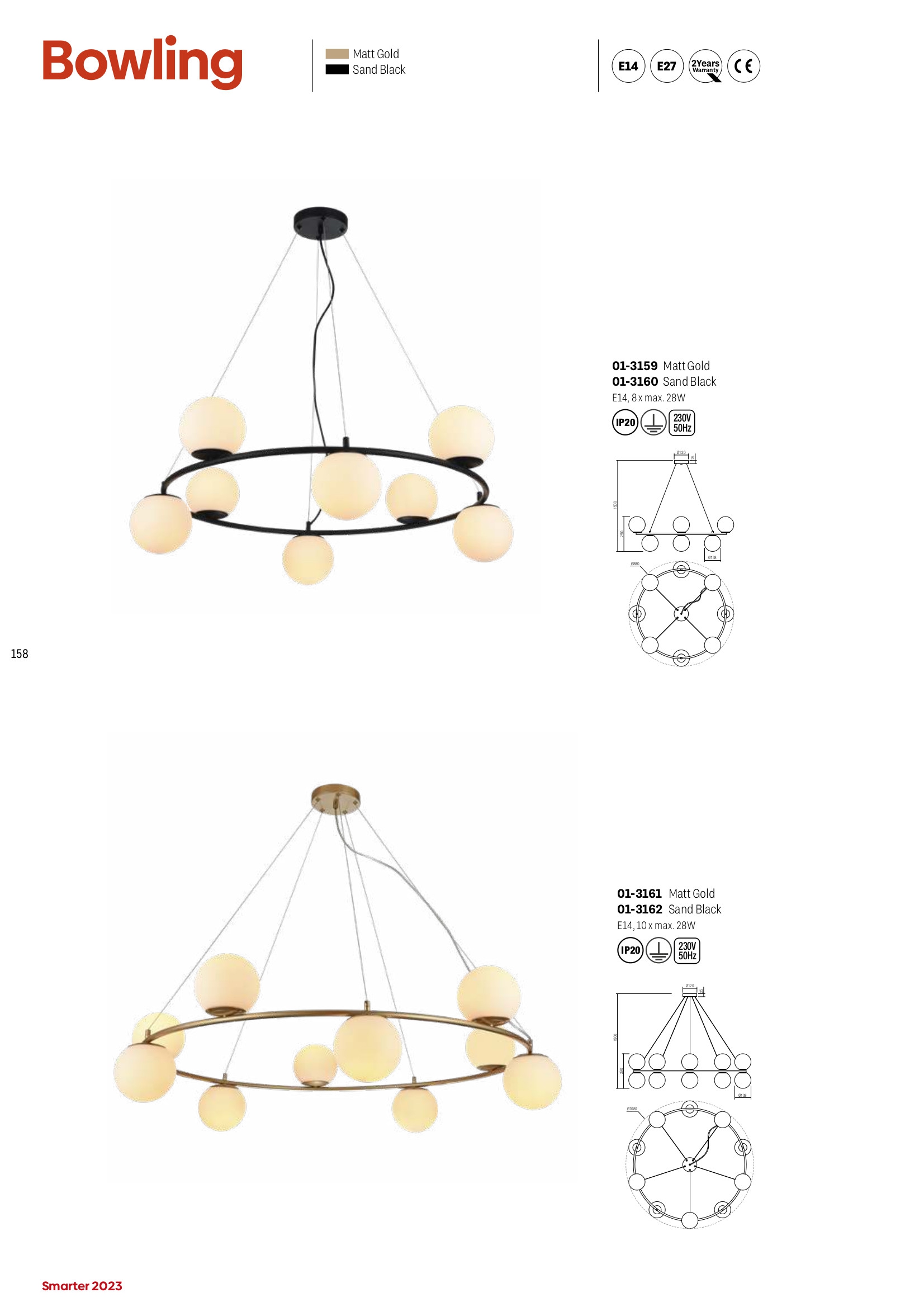 Осветителното тяло 01-3160 представлява полилей в съвременен стил. 01-3160 е от категорията осветителни тела и е подходящо за осветяване на различни помещения и пространства като: всекидневна / хол, спалня, кухня, трапезария, офис.