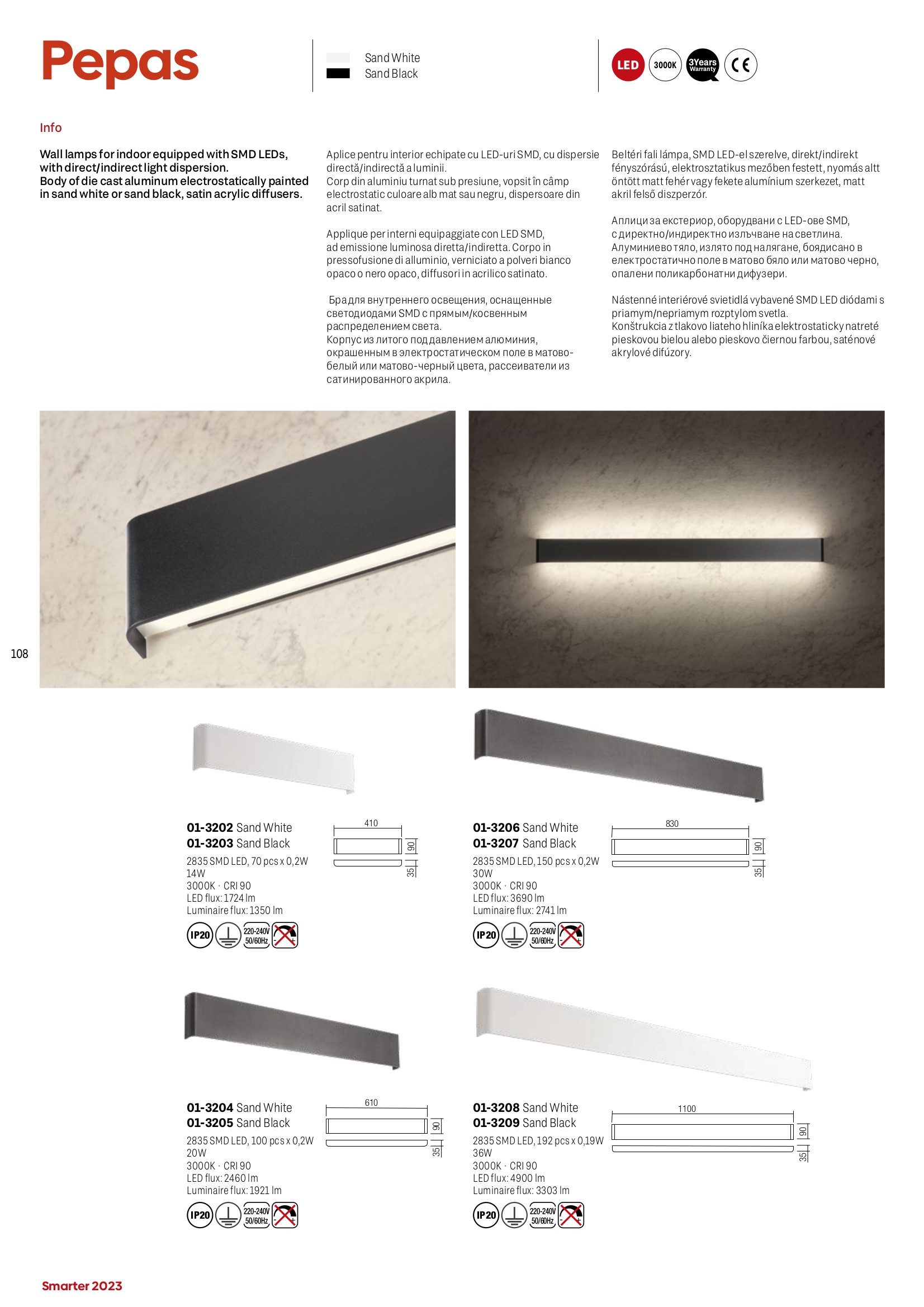 Лед аплик 01-3206 ще осигури комфорт и естетика във всяко помещение, в което се постави. Цялостната визия и дизайн на led лампата и вложените в изработката й материали, като излят под налягане алуминий с електростатично, нанесено покритие в в цвят бял мат, дифузери от полимер в цвят бял опал, ще допринесат за един неповторим стил. Благодарение на дългогодишния опит в производството на лед осветление, качествените материали и строгия контрол на качеството на изработка на дизайнерската линия Redo Smarter на производителя Redo (Румъния), 01-3206 е на високо европейско ниво.