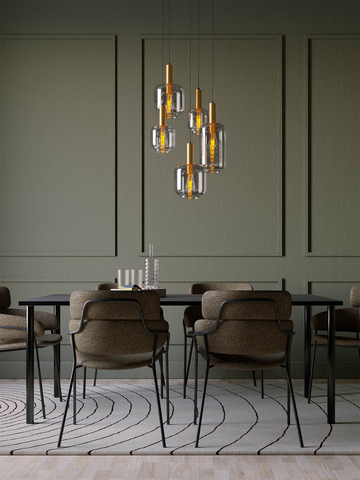 Осветителното тяло 01-3214 представлява полилей в съвременен стил. 01-3214 е от категорията осветителни тела и е подходящо за осветяване на различни помещения и пространства като: всекидневна / хол, спалня, кухня, трапезария, офис.