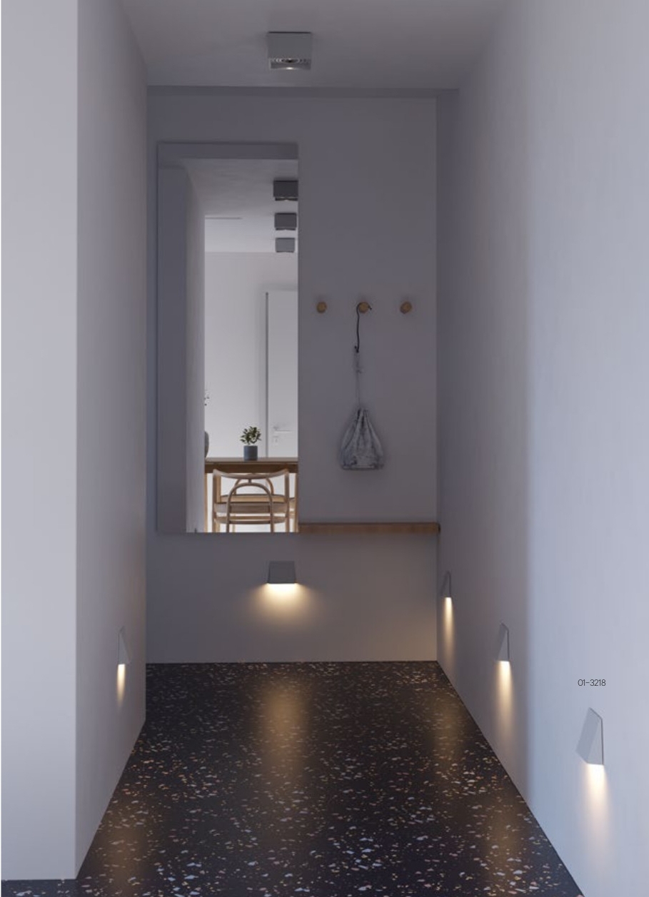 Осветителното тяло 01-3218 представлява аплик в съвременен стил. 01-3218 е от категорията осветителни тела и е подходящо за осветяване на различни помещения и пространства като: коридор, антре, стълбище, офис.