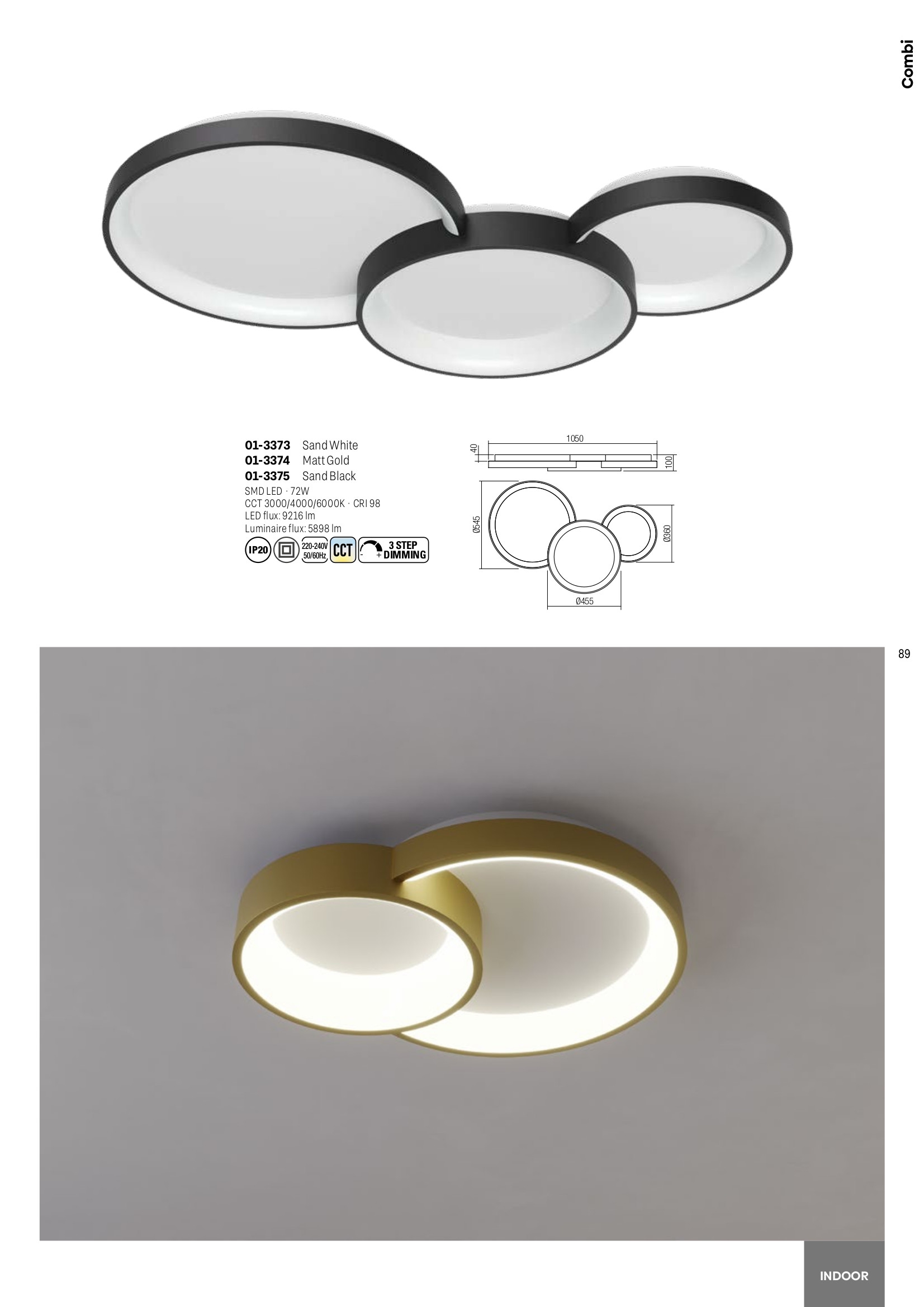 Осветителното тяло 01-3373 представлява плафон в съвременен стил. 01-3373 е от категорията осветителни тела и е подходящо за осветяване на различни помещения и пространства като: всекидневна / хол, спалня, кухня, трапезария, коридор, антре, стълбище, офис.