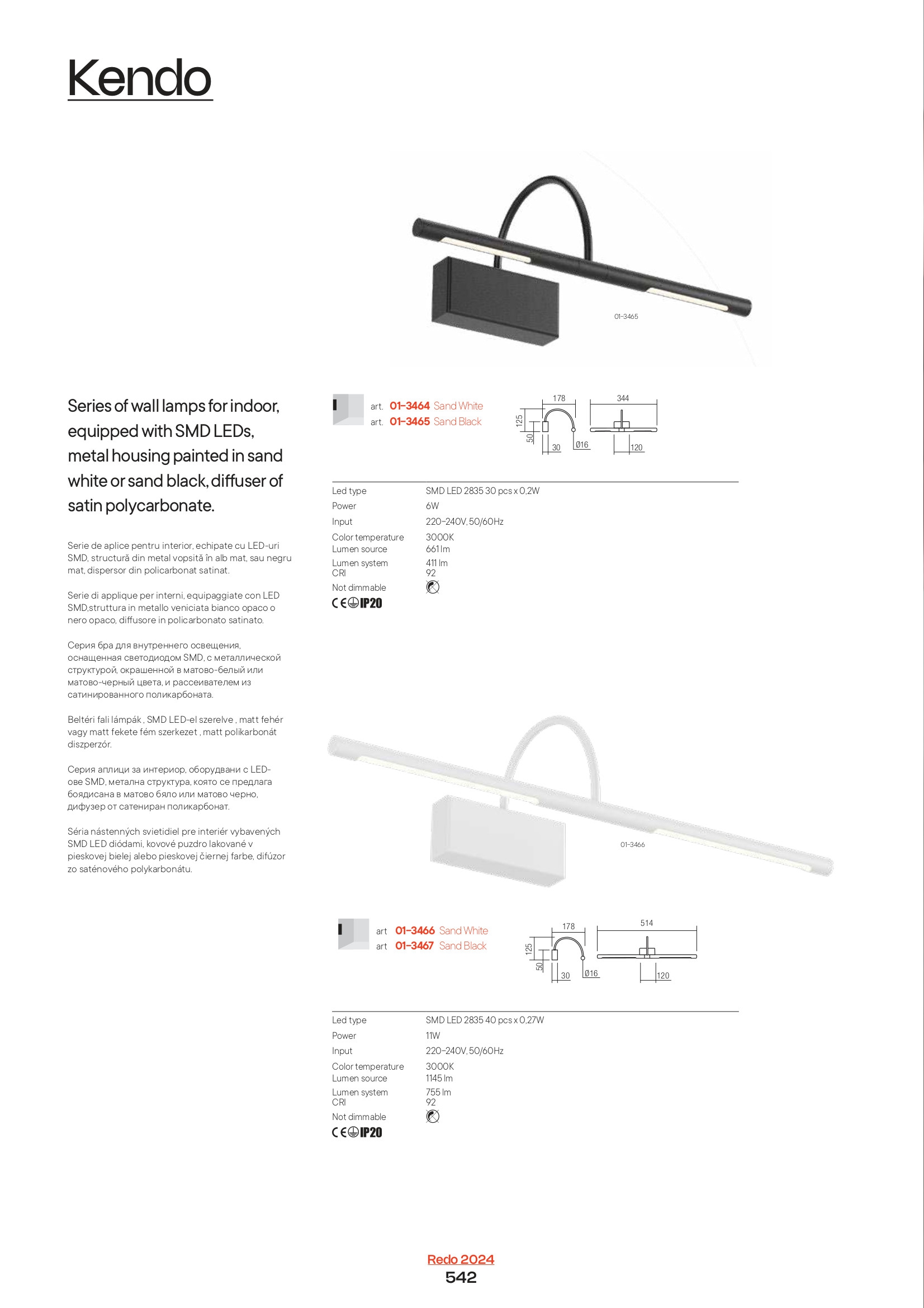 Лед аплик 01-3464 ще осигури комфорт и естетика във всяко помещение, в което се постави. Цялостната визия и дизайн на led лампата и вложените в изработката й материали, като метал в цвят бял мат, насочавщи се чрез завъртане дифузьори от сатениран поликарбонат, ще допринесат за един неповторим стил. Благодарение на дългогодишния опит в производството на лед осветление, качествените материали и строгия контрол на качеството на изработка на дизайнерската линия Redo Indoor на производителя Redo (Румъния), 01-3464 е на високо европейско ниво.