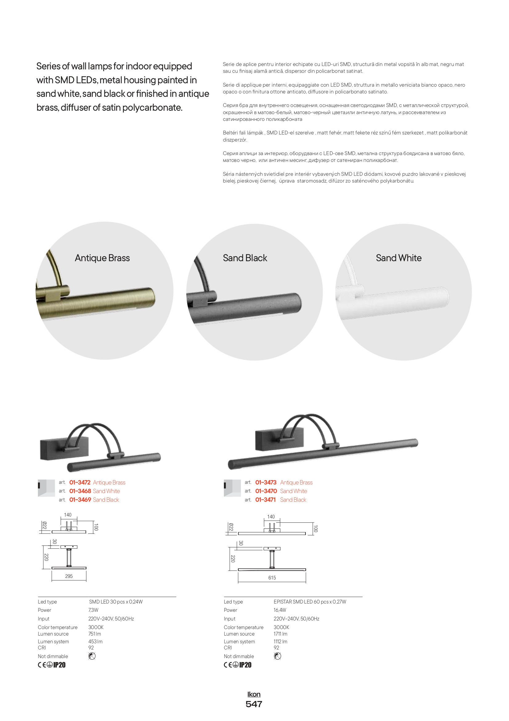 Осветителното тяло 01-3470 представлява лед аплик в съвременен стил. 01-3470 е от категорията и е подходящо за осветяване на различни помещения и пространства като: всекидневна / хол, спалня, кухня, трапезария, коридор, антре, стълбище, офис.