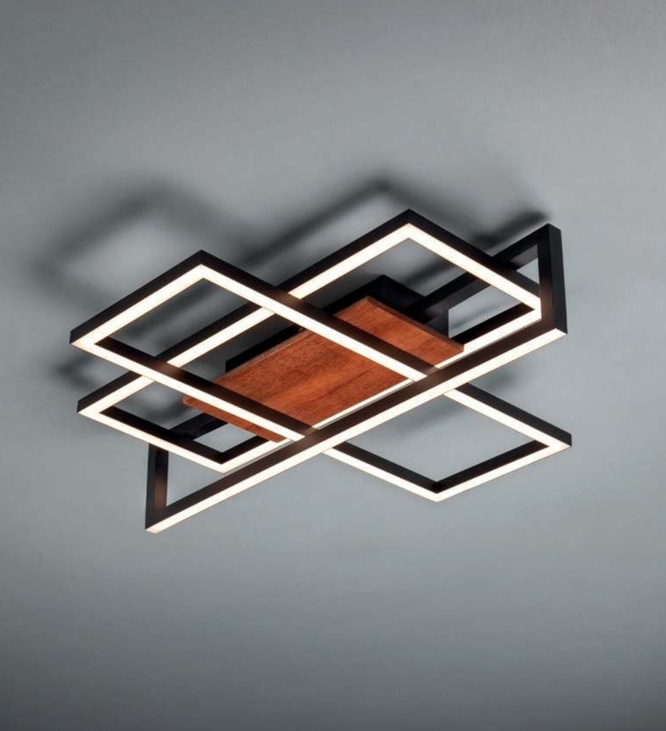 метал и алуминий в матово черно, орнамент от естествено дърво, опалово бели PVC дифузери