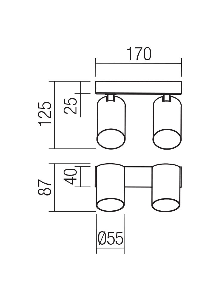 За стила, хармонията и естетиката на обстановката допринасят, както цялостната визия и дизайн на осветителното тяло, така и вложените в изработката качествени материали, като: основа в матово черно, регулируеми дифузери от алуминий в матово черен цвят.