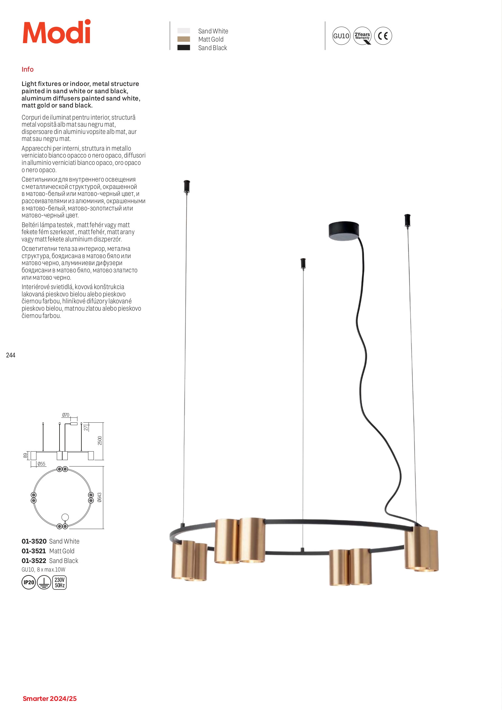 Ел. мощност 8 х 10 W Размери Ф64.3см x 8.9см x 250см Производител Redo, Румъния