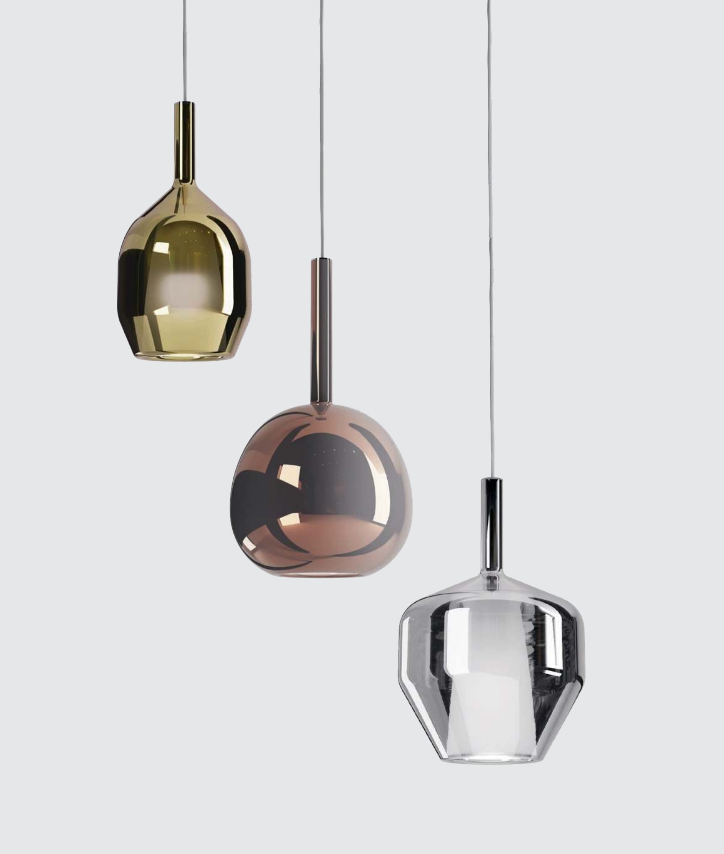 Стилът и естетиката на обстановката ще се обогатят благодарение, както на цялостната визия и дизайн на осветителното тяло, така и на вложените в изработката му, качествени материали, като: хромирана метална кострукция, дифузер от издухано боросиликатно опушено огледално стъкло, вътрешната част на дифузера е от сатенирано бяло стъкло, прозрачен кабел с дължина 2.5m.