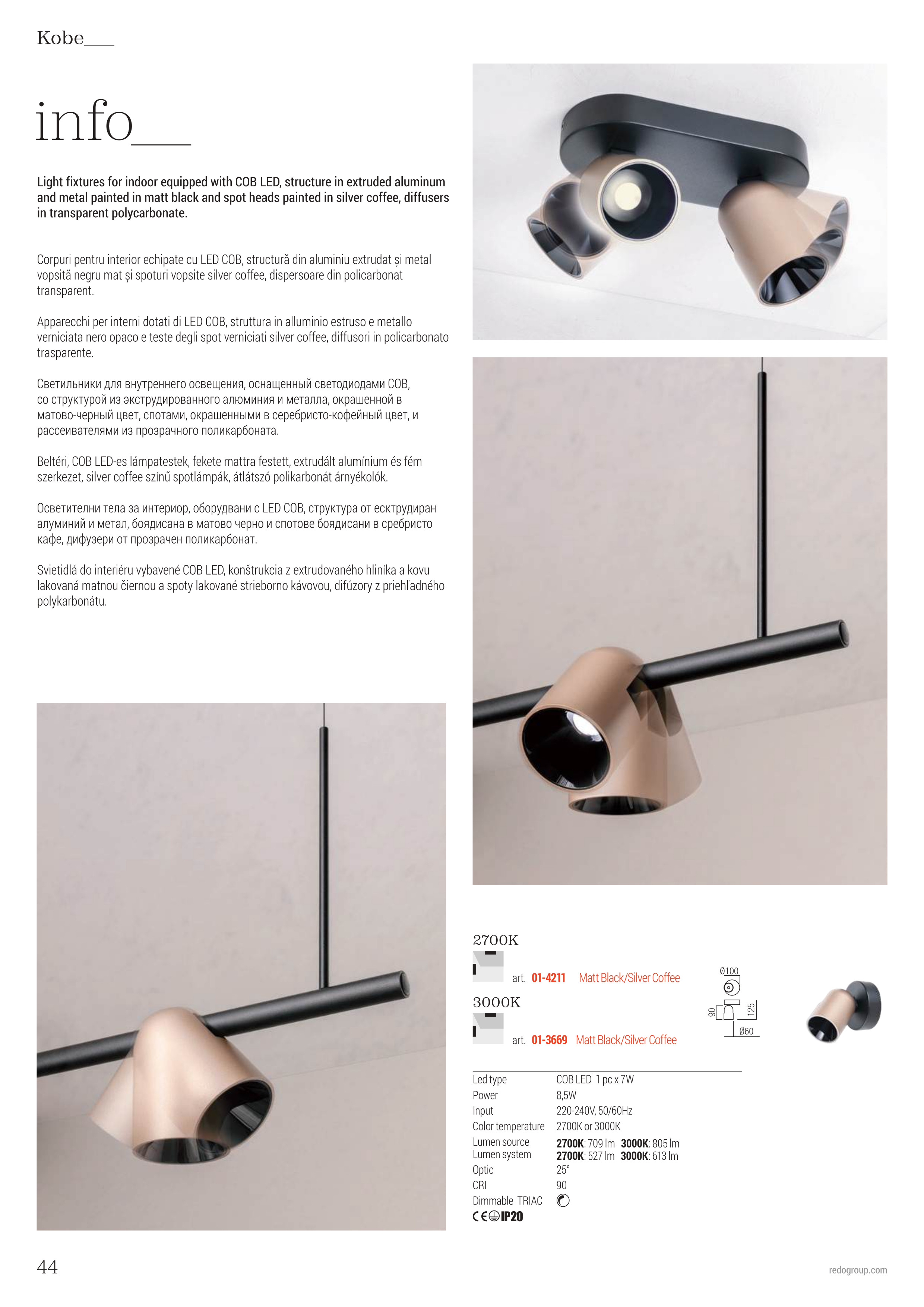 Осветителното тяло 01-3669 ще осигури комфорт и естетика във всяко помещение, в което се постави. Цялостната визия и дизайн на лампата и вложените в изработката й материали, като екструдиран алуминий и метал в матово черен цвят и спотове в цвят сребристо кафе, дифузер от прозрачен поликарбонат, ще допринесат за един неповторим стил. Благодарение на дългогодишния опит, качествените материали и строгия контрол на качеството на изработка на дизайнерската линия Redo Indoor на производителя Redo (Румъния), 01-3669 е на високо европейско ниво.