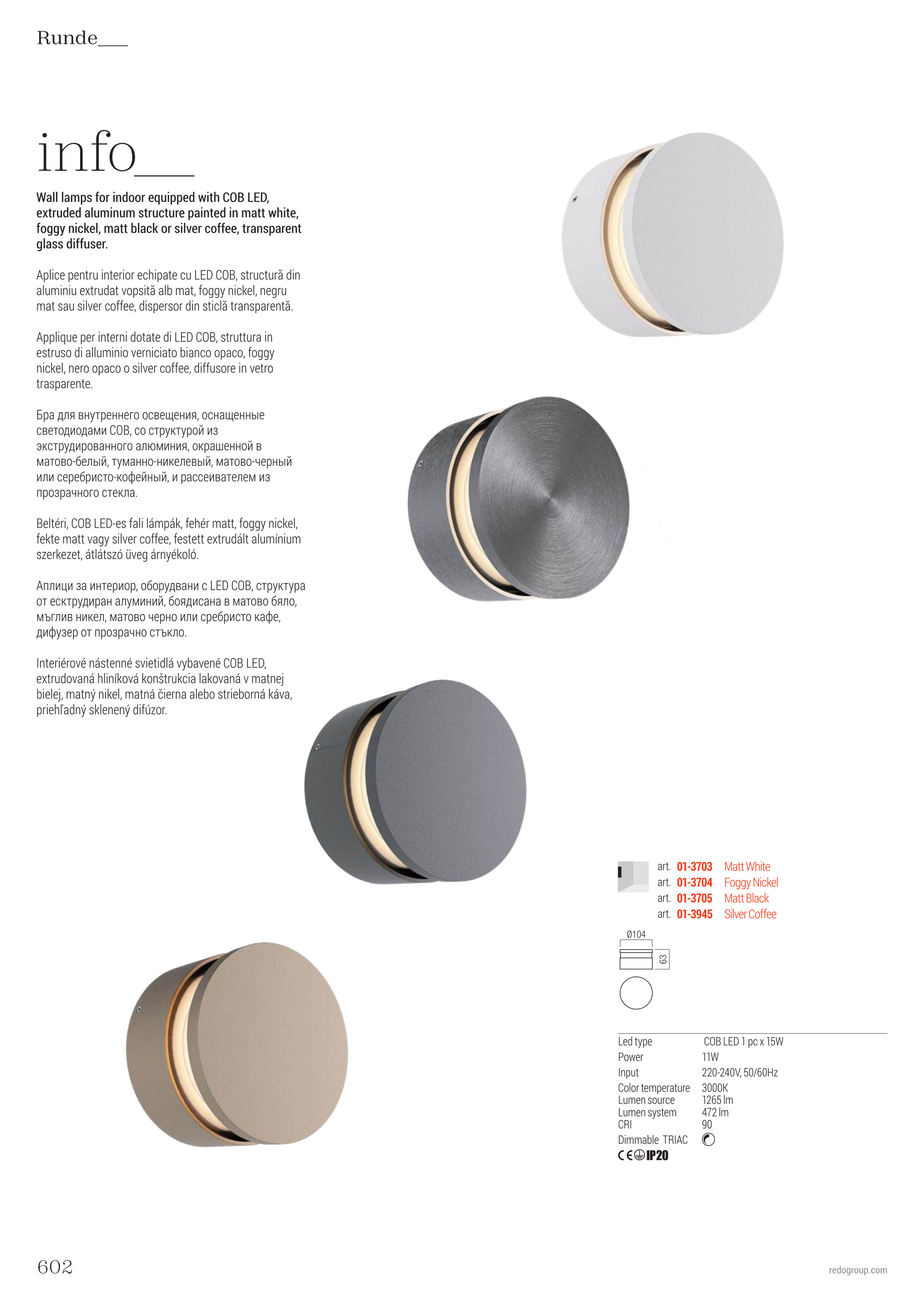Ел. мощност 1 х 11 W Размери Ф10.4см x 6.3см Производител Redo, Румъния