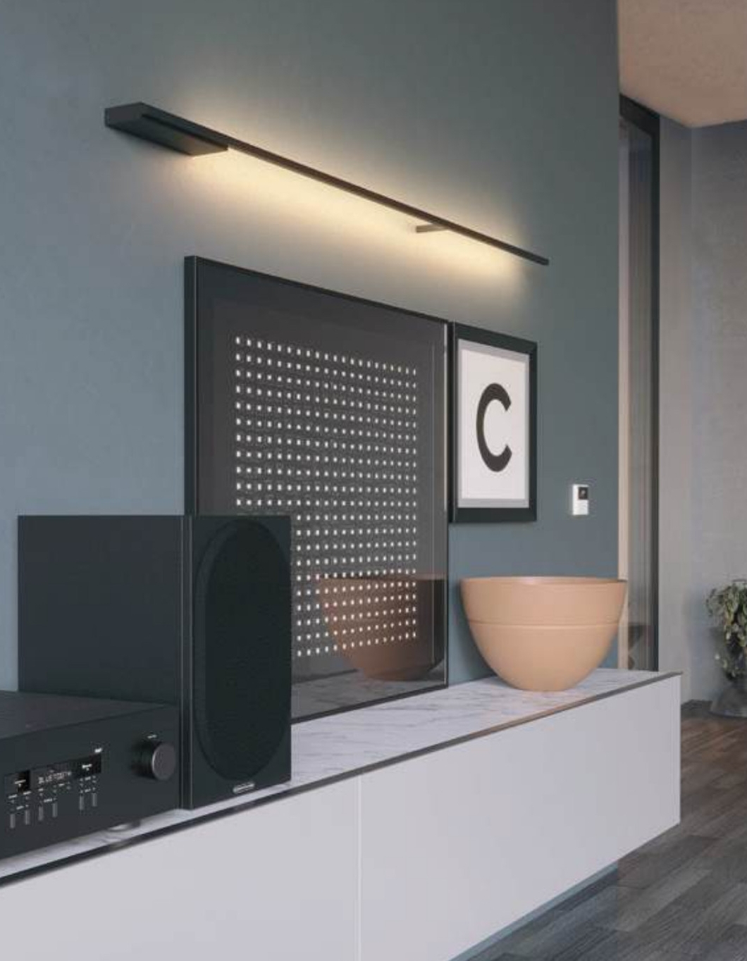 есктрудиран алуминий в матово черно, дифузер от сатениран акрил, непряка дисперсия на светлината