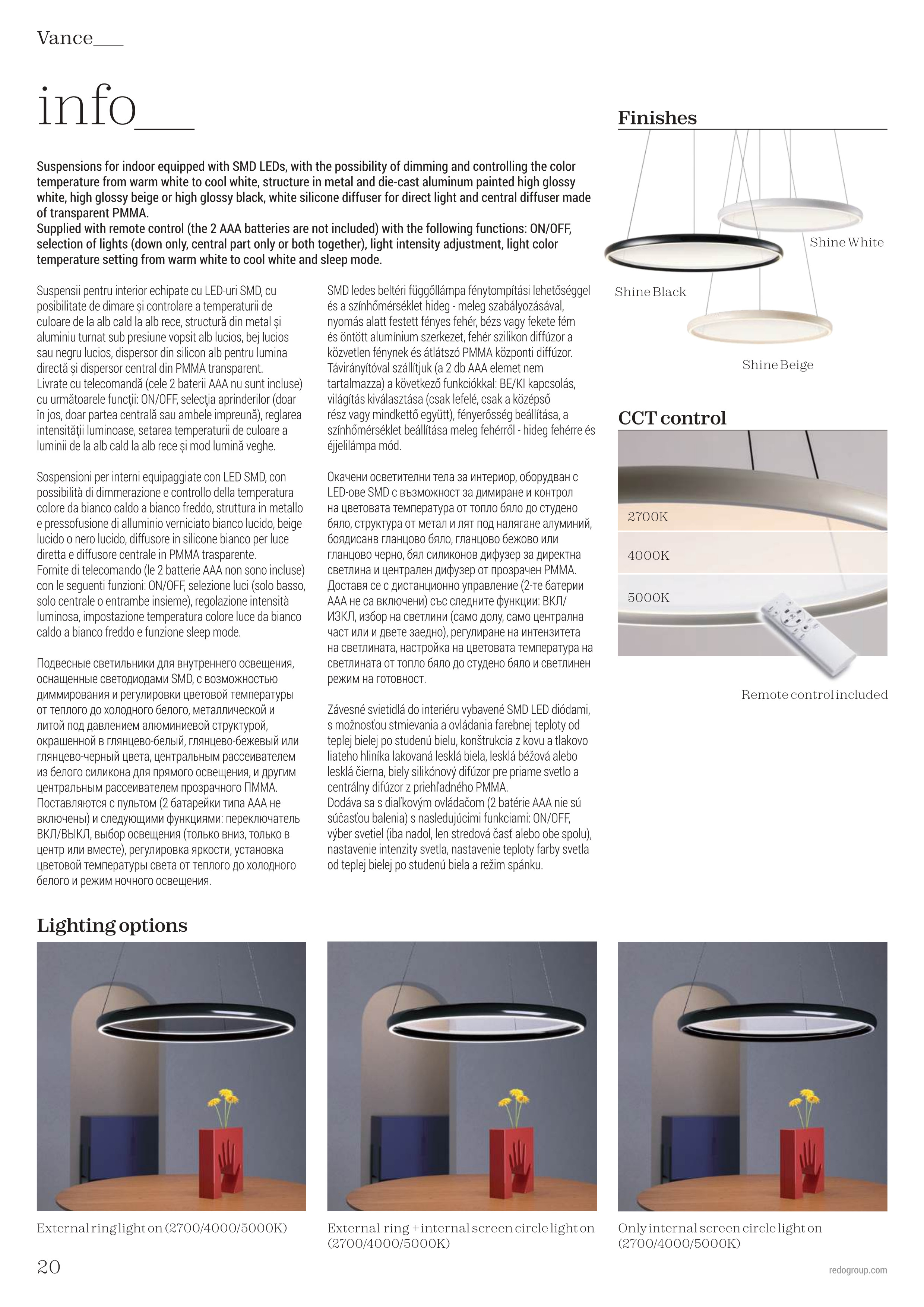 Осветителното тяло 01-3737 ще осигури комфорт и естетика във всяко помещение, в което се постави. Цялостната визия и дизайн на лампата и вложените в изработката й материали, като метал и лят под налягане алуминий в гланцово бeжов цвят, бял, силиконов дифузер от полимер, дистанционно за димиране и промяна на CCT 2700K/4000K/5000K, ON/OFF и избор на светлинен източник, ще допринесат за един неповторим стил. Благодарение на дългогодишния опит, качествените материали и строгия контрол на качеството на изработка на дизайнерската линия Redo Indoor на производителя Redo (Румъния), 01-3737 е на високо европейско ниво.