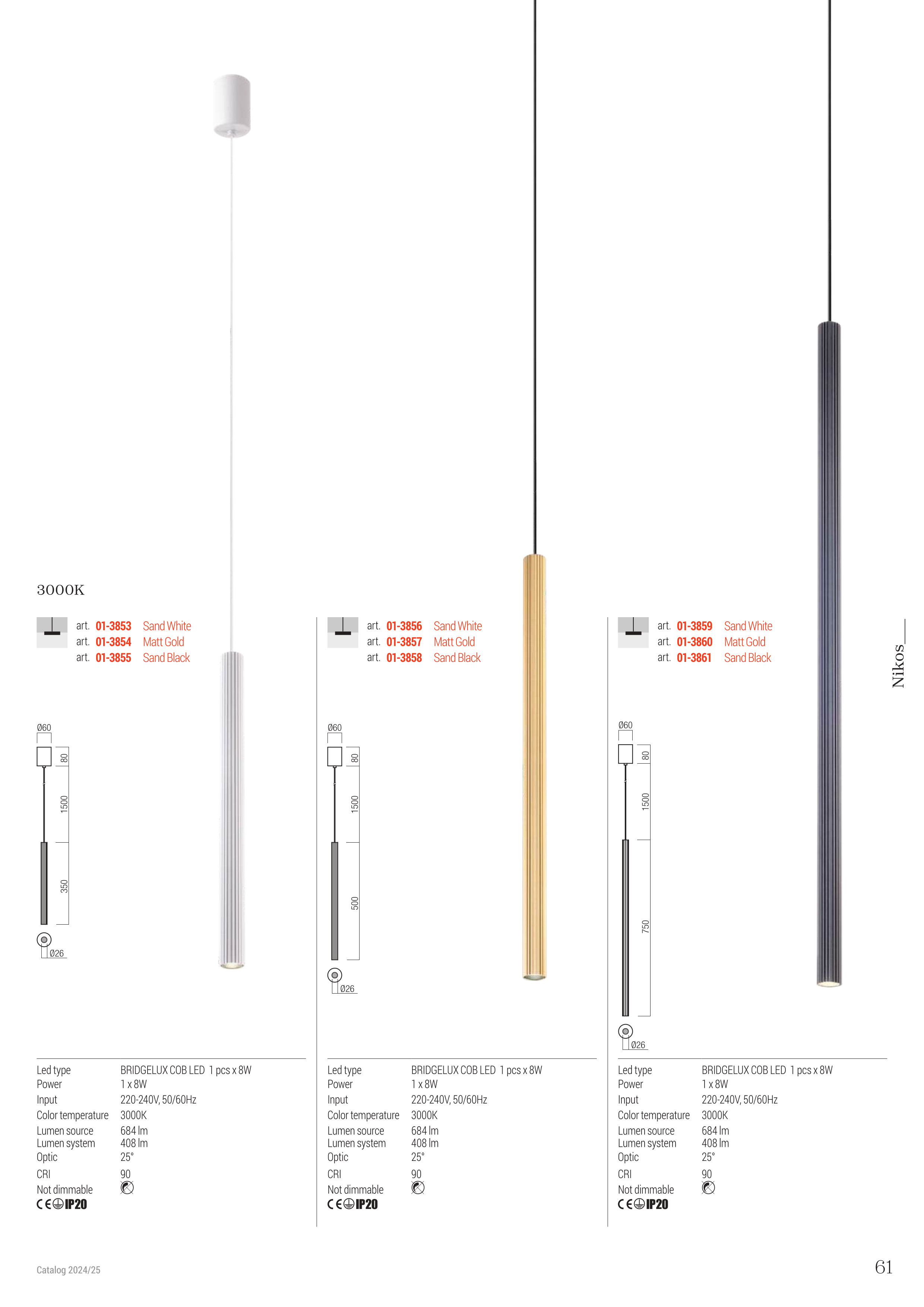 Осветителното тяло 01-3859 представлява лед пендел, спот лампа в съвременен стил. 01-3859 е от категорията и е подходящо за осветяване на различни помещения и пространства като: всекидневна / хол, спалня, кухня, трапезария, коридор, антре, офис.