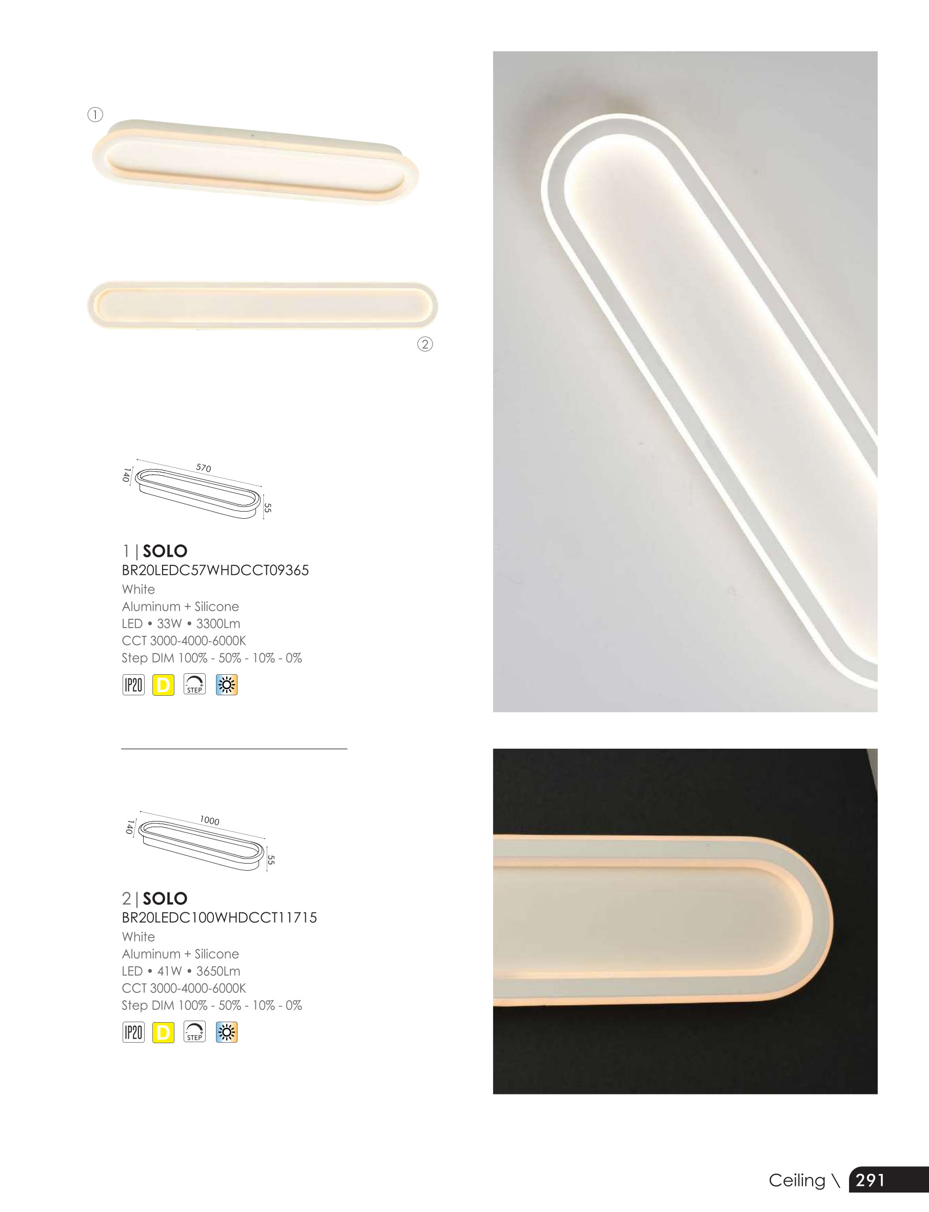алуминий в бял цвят, силикон в бяло, възможност за смяна на цветната температура CCT 3000-4000-6000K, DIM 100% - 50% - 10% - 0%