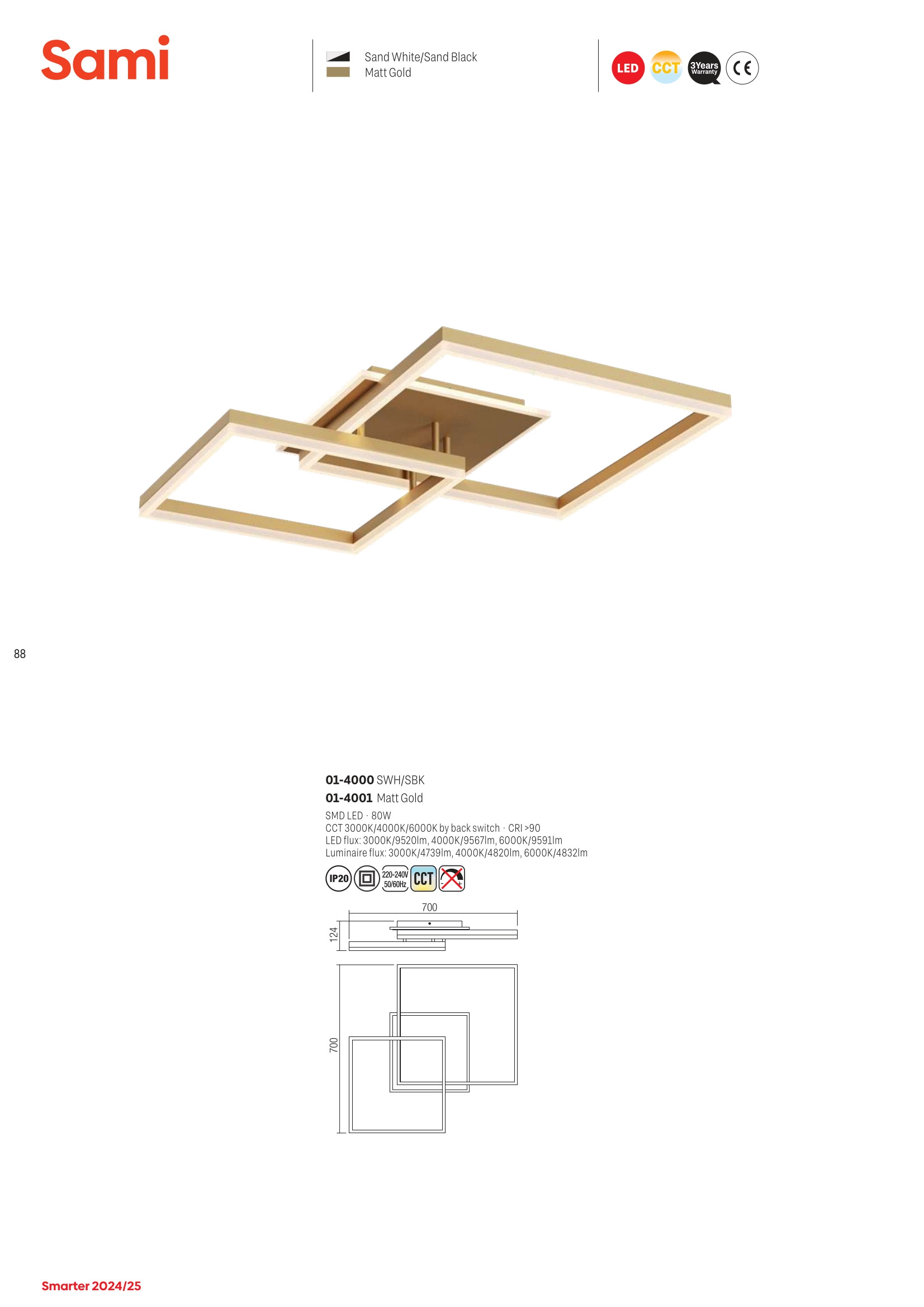 Осветителното тяло 01-4000 ще осигури комфорт и естетика във всяко помещение, в което се постави. Цялостната визия и дизайн на лампата и вложените в изработката й материали, като метална основа в матово бяло, алуминиева структура в матово черно, дифузер от сатениран акрил, CCT 3000K/4000K/6000K, ще допринесат за един неповторим стил. Благодарение на дългогодишния опит, качествените материали и строгия контрол на качеството на изработка на дизайнерската линия Redo Smarter на производителя Redo (Румъния), 01-4000 е на високо европейско ниво.