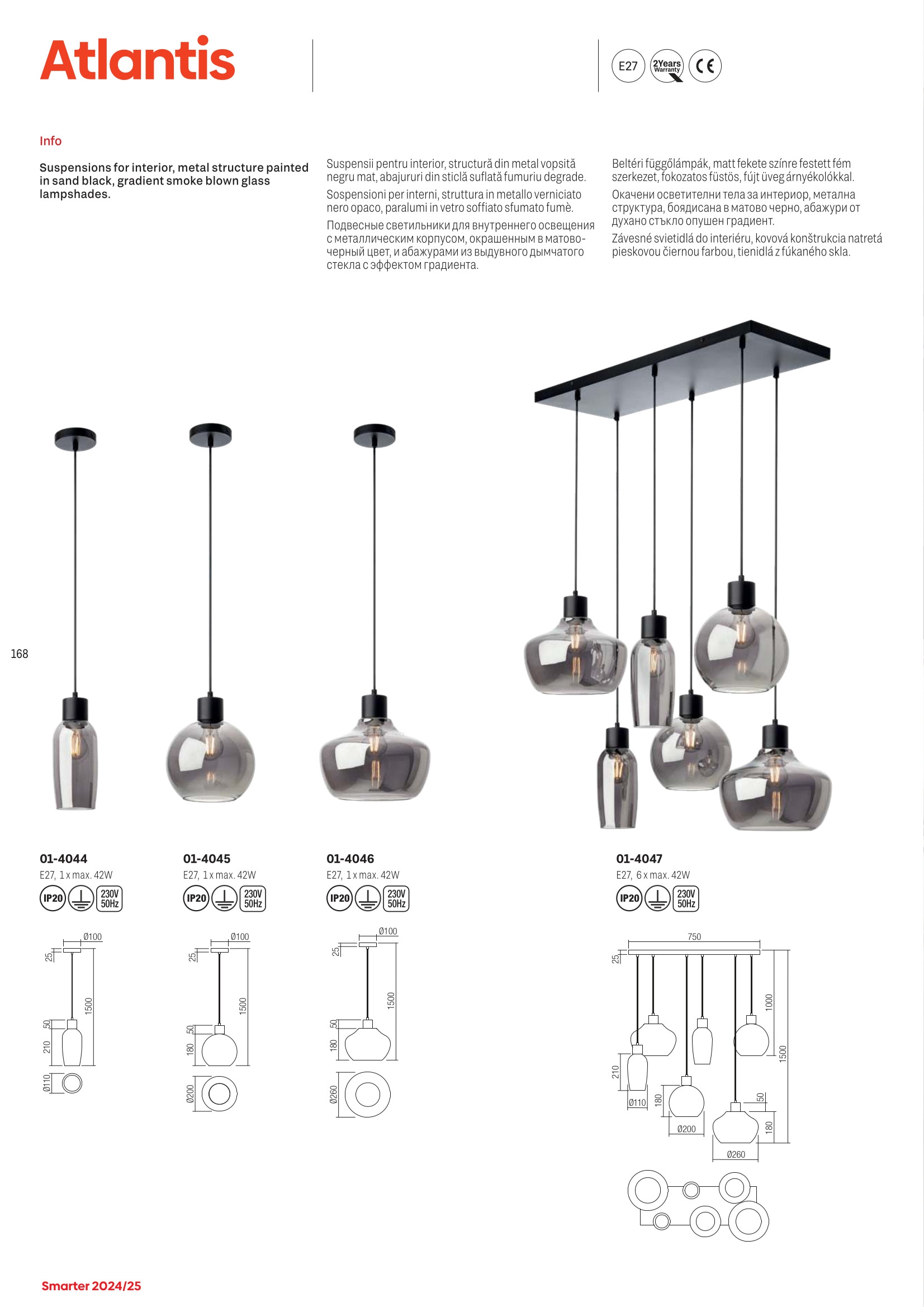 Осветителното тяло 01-4045 ще осигури комфорт и естетика във всяко помещение, в което се постави. Цялостната визия и дизайн на лампата и вложените в изработката й материали, като метал в матово черно, духано стъкло градиентно опушено, ще допринесат за един неповторим стил. Благодарение на дългогодишния опит, качествените материали и строгия контрол на качеството на изработка на дизайнерската линия Redo Smarter на производителя Redo (Румъния), 01-4045 е на високо европейско ниво.