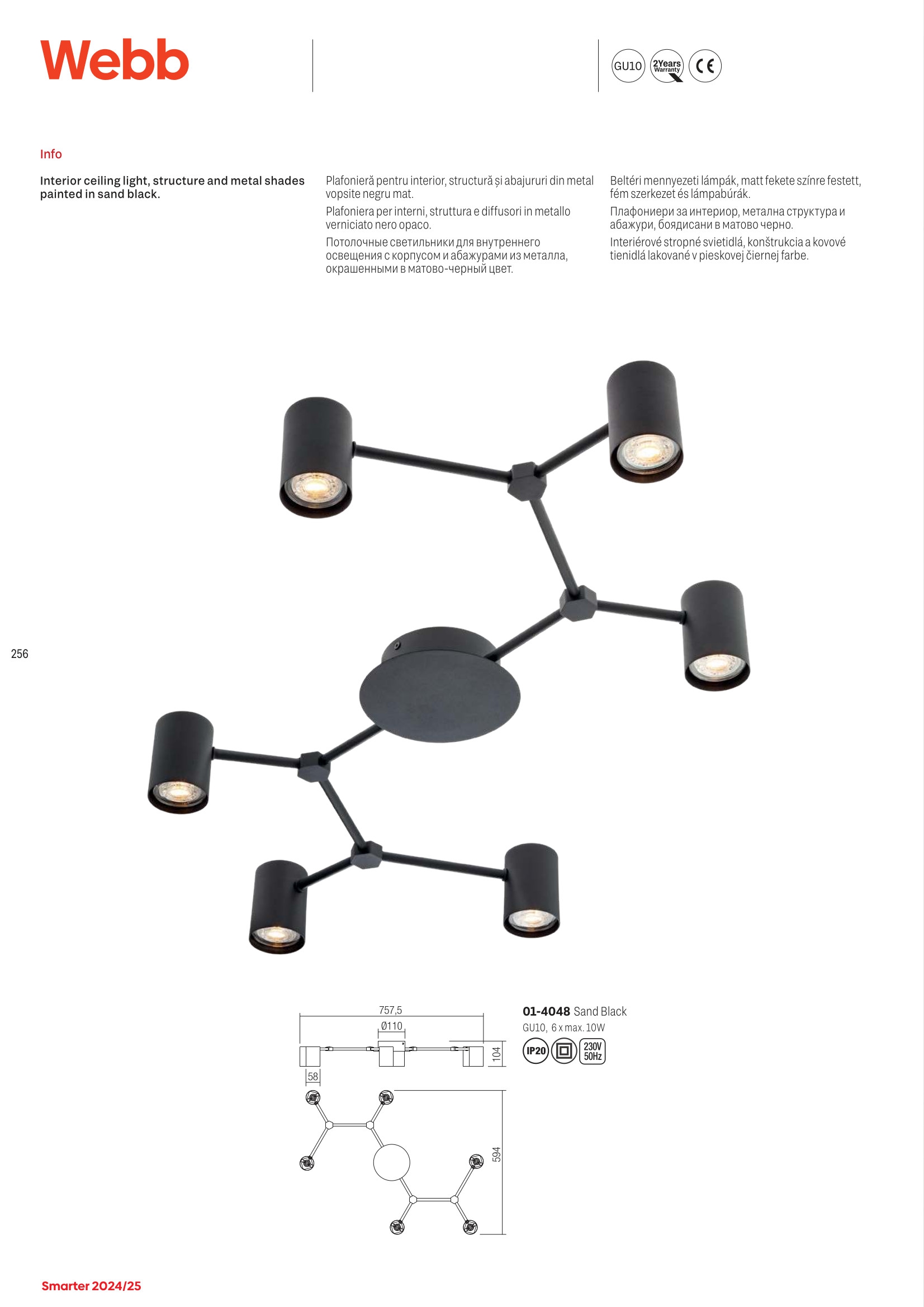 Осветителното тяло 01-4048 ще осигури комфорт и естетика във всяко помещение, в което се постави. Цялостната визия и дизайн на лампата и вложените в изработката й материали, като метал в матово черен цвят, ще допринесат за един неповторим стил. Благодарение на дългогодишния опит, качествените материали и строгия контрол на качеството на изработка на дизайнерската линия Redo Smarter на производителя Redo (Румъния), 01-4048 е на високо европейско ниво.