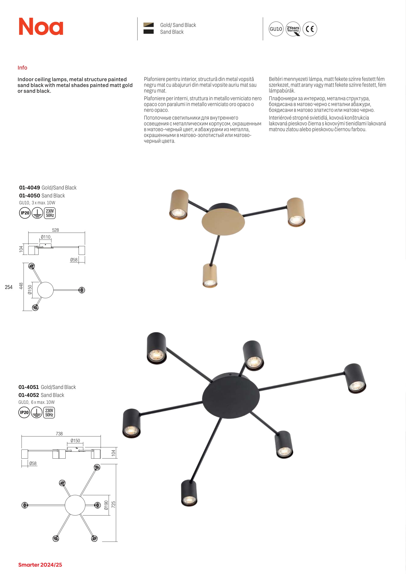 Осветителното тяло 01-4050 ще осигури комфорт и естетика във всяко помещение, в което се постави. Цялостната визия и дизайн на лампата и вложените в изработката й материали, като метална структура в матово черно с метални абажури в матово черно, ще допринесат за един неповторим стил. Благодарение на дългогодишния опит, качествените материали и строгия контрол на качеството на изработка на дизайнерската линия Redo Smarter на производителя Redo (Румъния), 01-4050 е на високо европейско ниво.