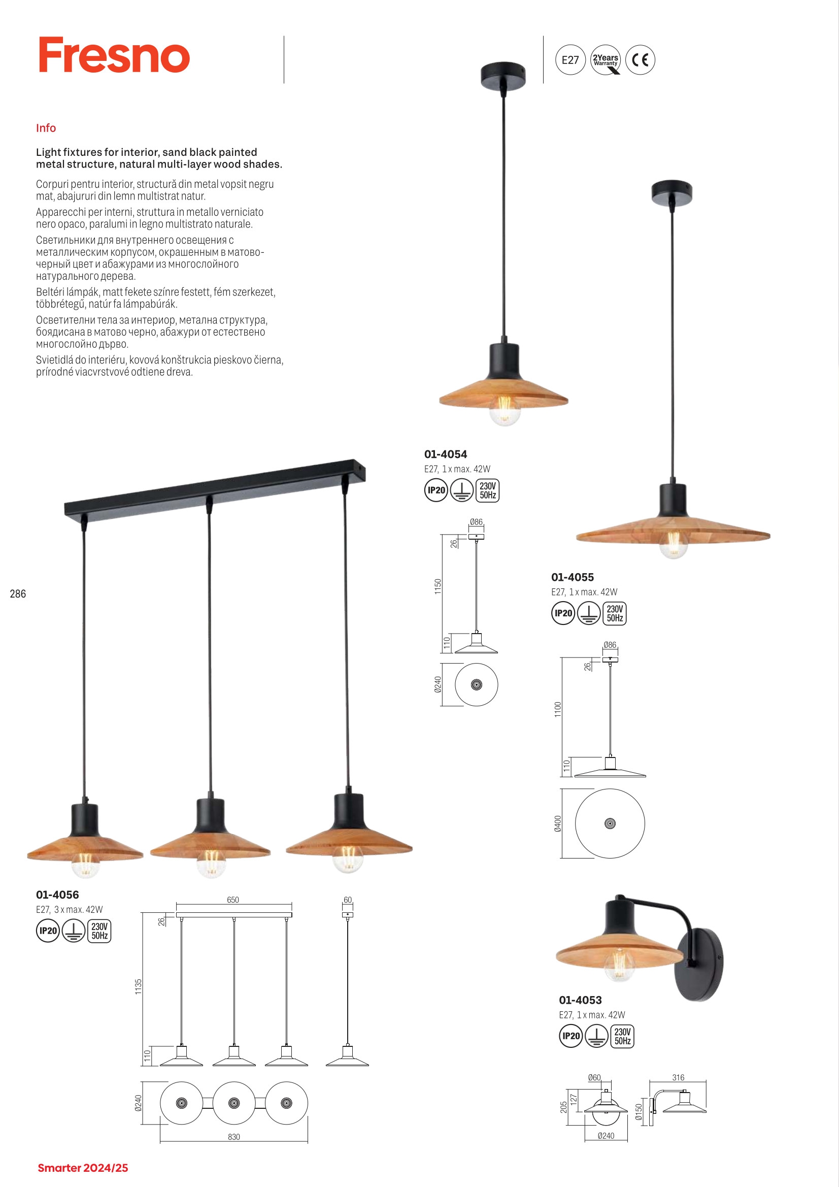 Осветителното тяло 01-4054 ще осигури комфорт и естетика във всяко помещение, в което се постави. Цялостната визия и дизайн на лампата и вложените в изработката й материали, като метал в матово черно, абажур от естествено многослойно дърво, ще допринесат за един неповторим стил. Благодарение на дългогодишния опит, качествените материали и строгия контрол на качеството на изработка на дизайнерската линия Redo Smarter на производителя Redo (Румъния), 01-4054 е на високо европейско ниво.