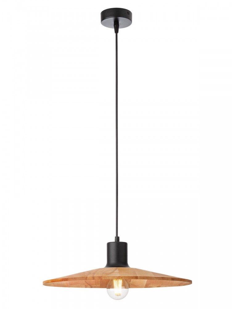 Стилът и естетиката на обстановката ще се обогатят благодарение, както на цялостната визия и дизайн на осветителното тяло, така и на вложените в изработката му, качествени материали, като: метал в матово черно, абажур от естествено многослойно дърво.