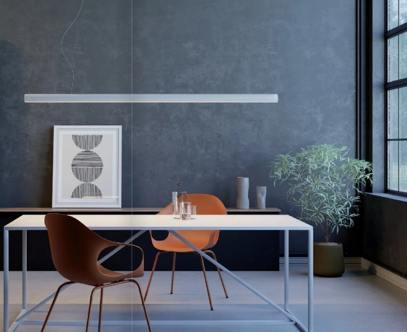 екструдиран алуминий в цвят бял мат, дифузер от сатениран акрил, интуитивно управление без докосване за включване изключване и димиране, ССТ 2700/3000К