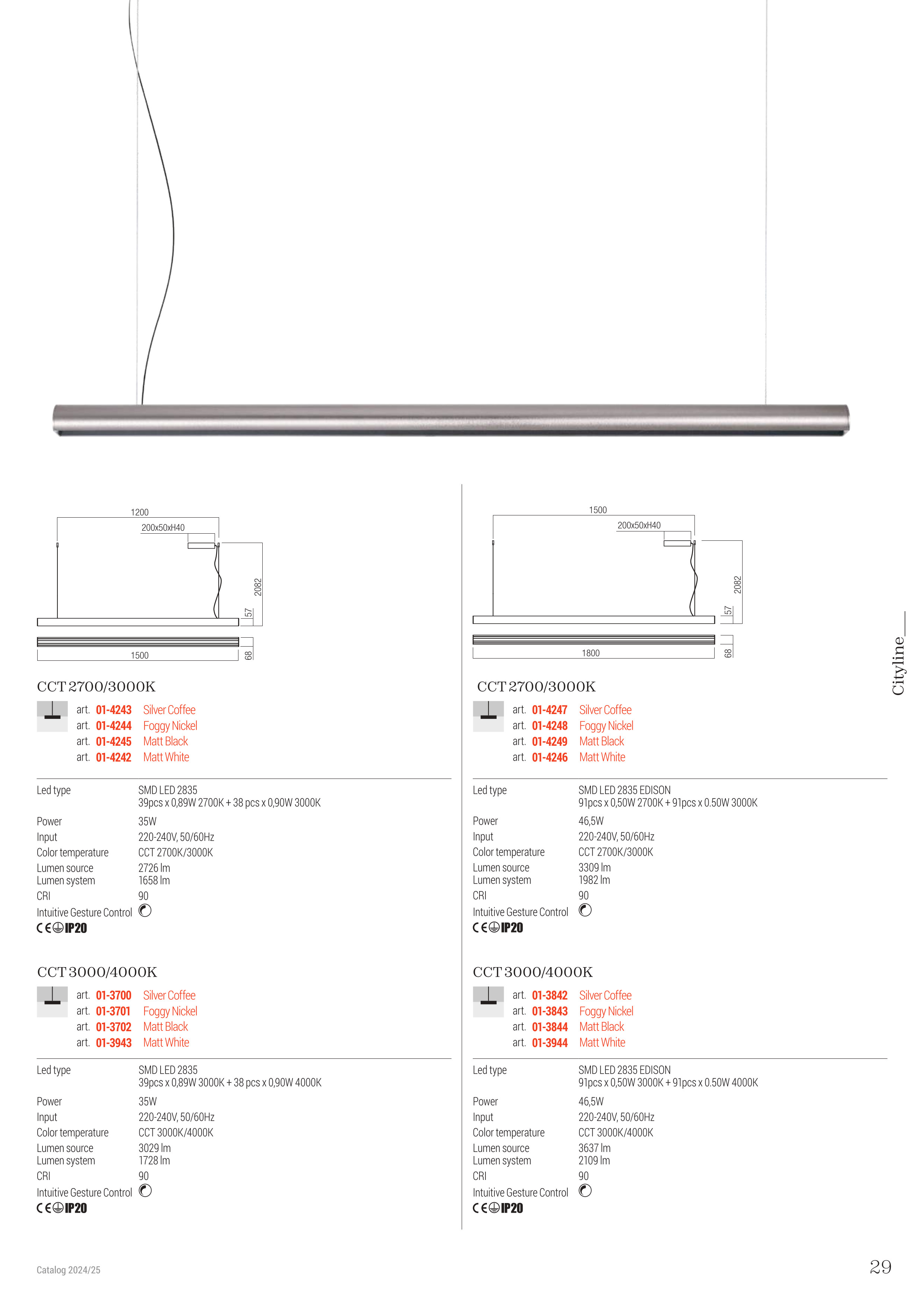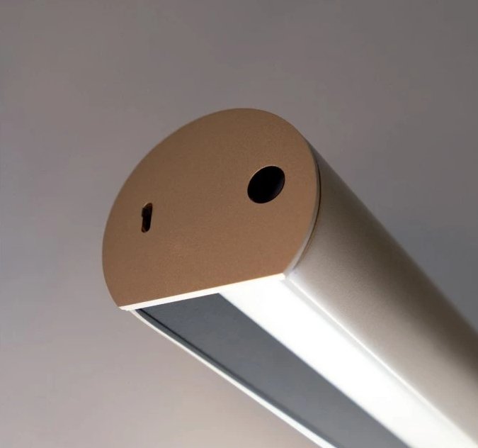 екструдиран алуминий в цвят сребристо кафе, дифузер от сатениран акрил, интуитивно управление без докосване за включване изключване и димиране, ССТ 2700/3000К
