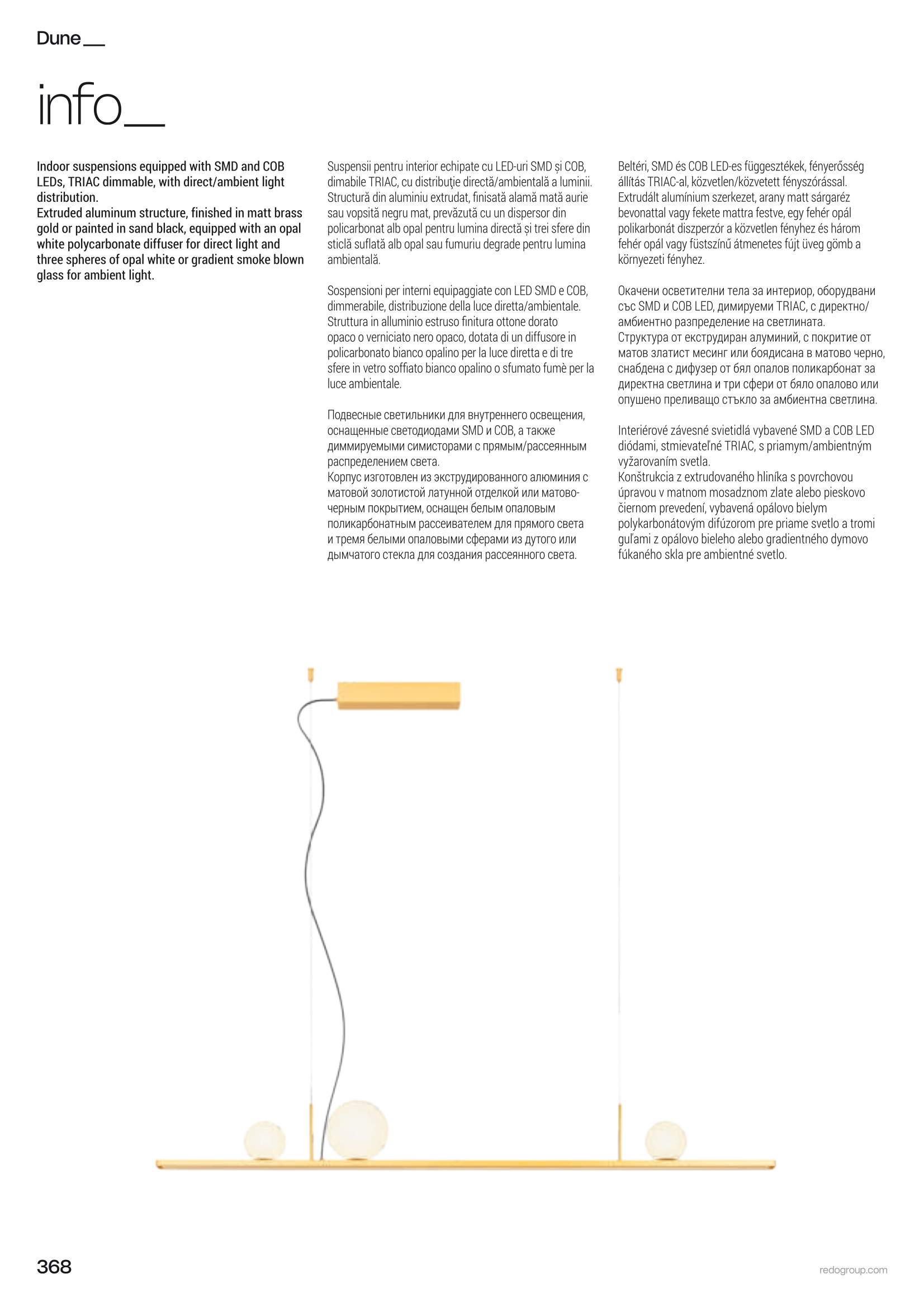 Лед полилей 01-4302 ще осигури комфорт и естетика във всяко помещение, в което се постави. Цялостната визия и дизайн на led лампата и вложените в изработката й материали, като алуминий в цвят черен мат, дифузер от бял опалов поликарбонат, градиентно опушено стъкло, ще допринесат за един неповторим стил. Благодарение на дългогодишния опит в производството на лед осветление, качествените материали и строгия контрол на качеството на изработка на дизайнерската линия Redo Indoor на производителя Redo (Румъния), 01-4302 е на високо европейско ниво.