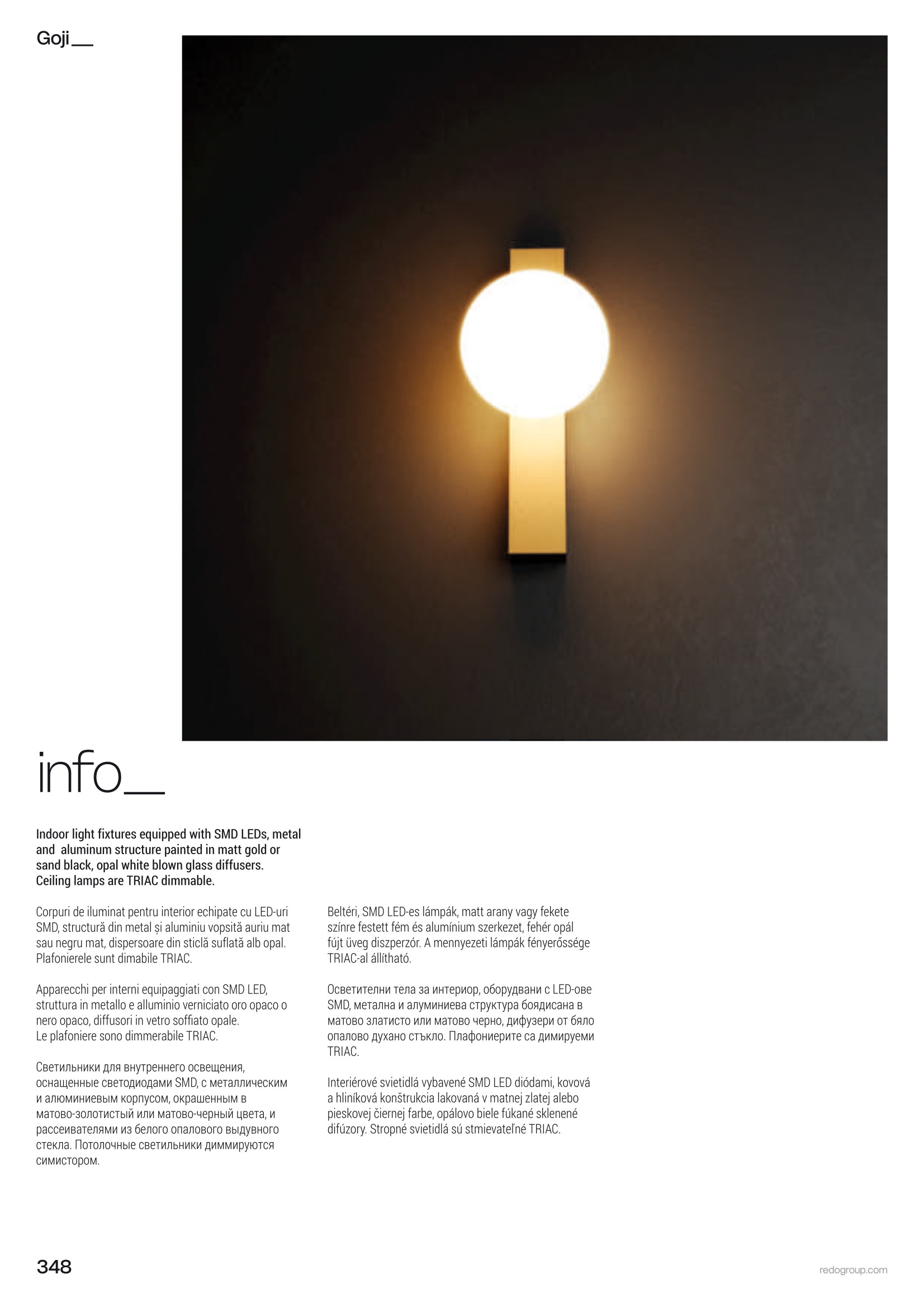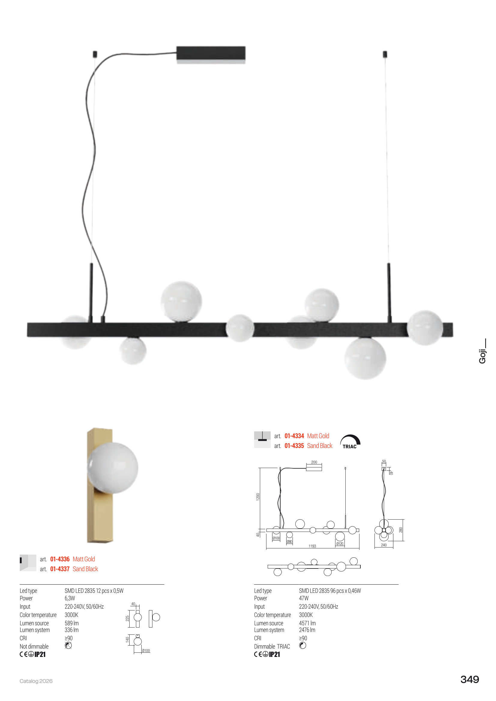 Лед полилей 01-4334 ще осигури комфорт и естетика във всяко помещение, в което се постави. Цялостната визия и дизайн на led лампата и вложените в изработката й материали, като алуминий в матово златисто, дифузери от бяло опалово духано стъкло, димируеми с TRIAC, ще допринесат за един неповторим стил. Благодарение на дългогодишния опит в производството на лед осветление, качествените материали и строгия контрол на качеството на изработка на дизайнерската линия Redo Indoor на производителя Redo (Румъния), 01-4334 е на високо европейско ниво.