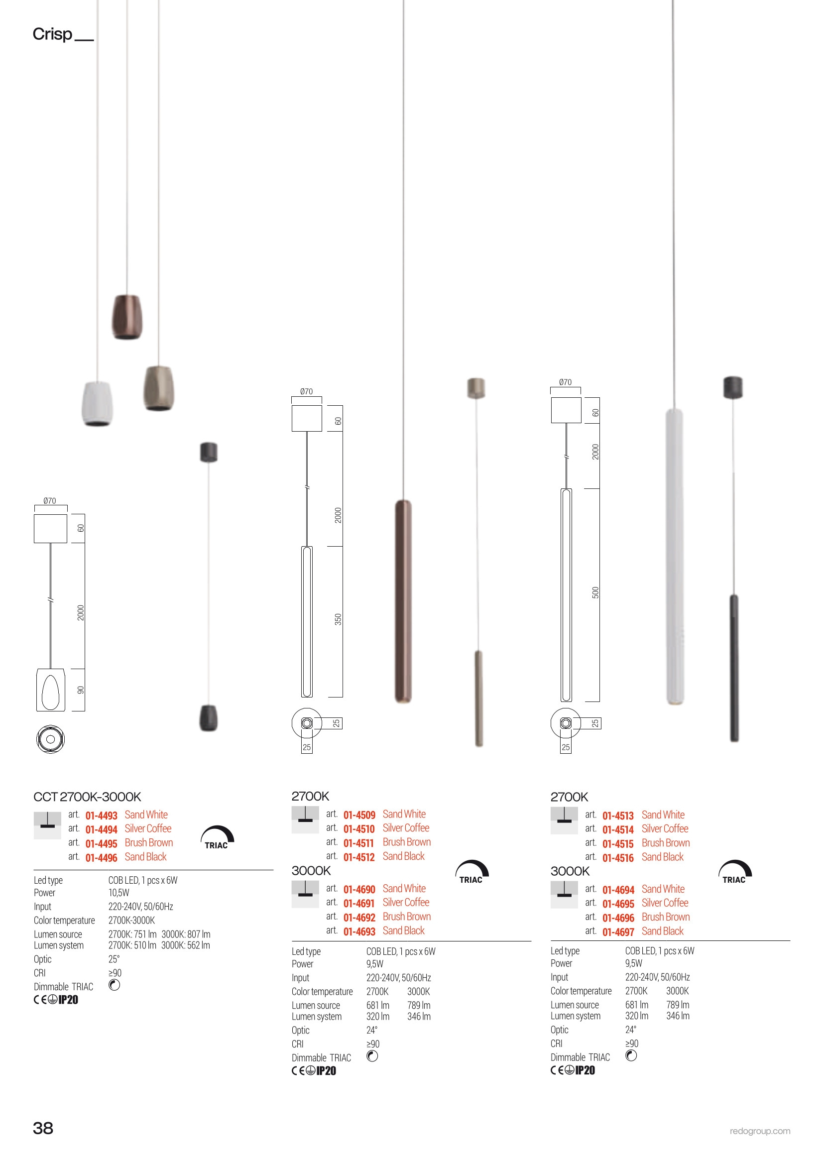 Лед пендел 01-4692 ще осигури комфорт и естетика във всяко помещение, в което се постави. Цялостната визия и дизайн на led лампата и вложените в изработката й материали, като полиран метал в матово кафяво, разсейвател на светлината от прозрачно стъкло, димируемо с TRIAC, ще допринесат за един неповторим стил. Благодарение на дългогодишния опит в производството на лед осветление, качествените материали и строгия контрол на качеството на изработка на дизайнерската линия Redo Indoor на производителя Redo (Румъния), 01-4692 е на високо европейско ниво.