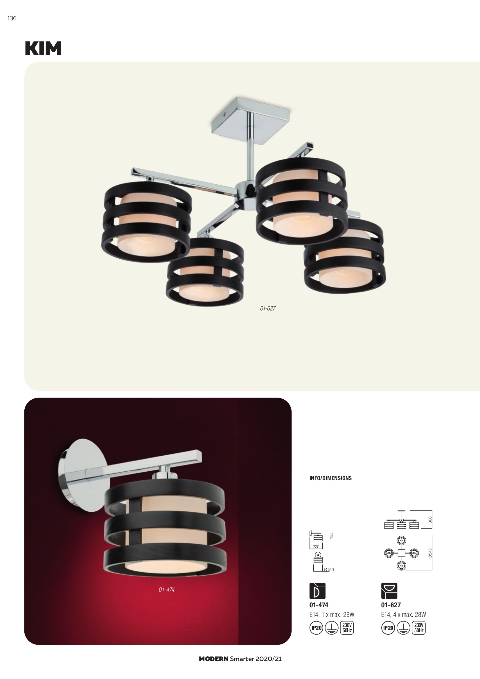 Осветителното тяло 01-627 ще осигури комфорт и естетика във всяко помещение, в което се постави. Цялостната визия и дизайн на лампата и вложените в изработката й материали, като метал с хромово покритие, дърво в цвят венге, абажури от издухано стъкло в цвят бял опал, ще допринесат за един неповторим стил. Благодарение на дългогодишния опит, качествените материали и строгия контрол на качеството на изработка на дизайнерската линия Redo Smarter на производителя Redo (Румъния), 01-627 е на високо европейско ниво.
