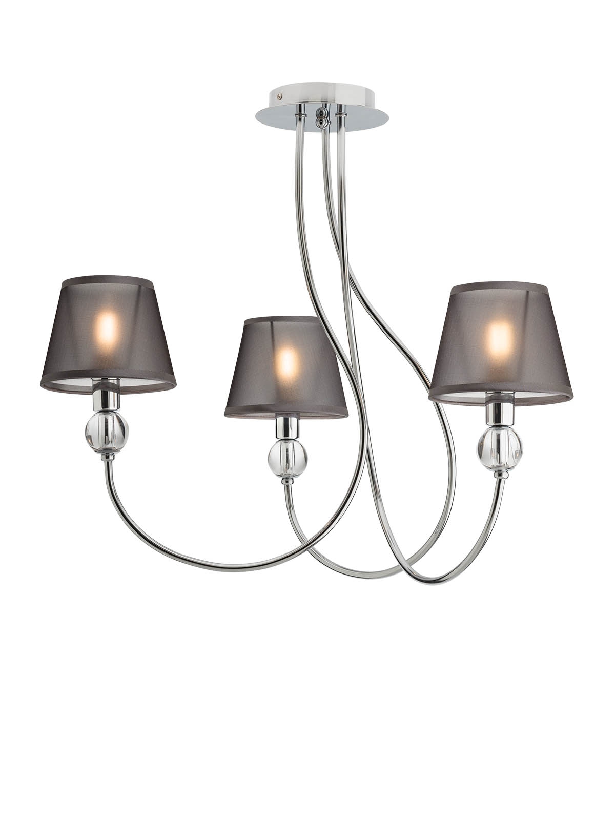 метал в цвят хром, стъклен детайл, абажури от текстил в черен цвят
