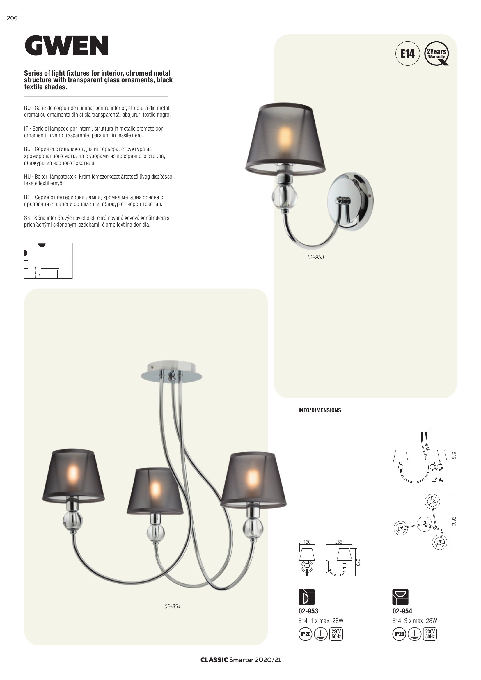 Магазини ОРИОН представят осветителното тяло 02-954, което представлява полилей в съвременен стил. Лампата е част от категорията полилеи и е подходяща за различни помещения и пространства, като например всекидневна / хол, спалня, кухня, трапезария, офис.