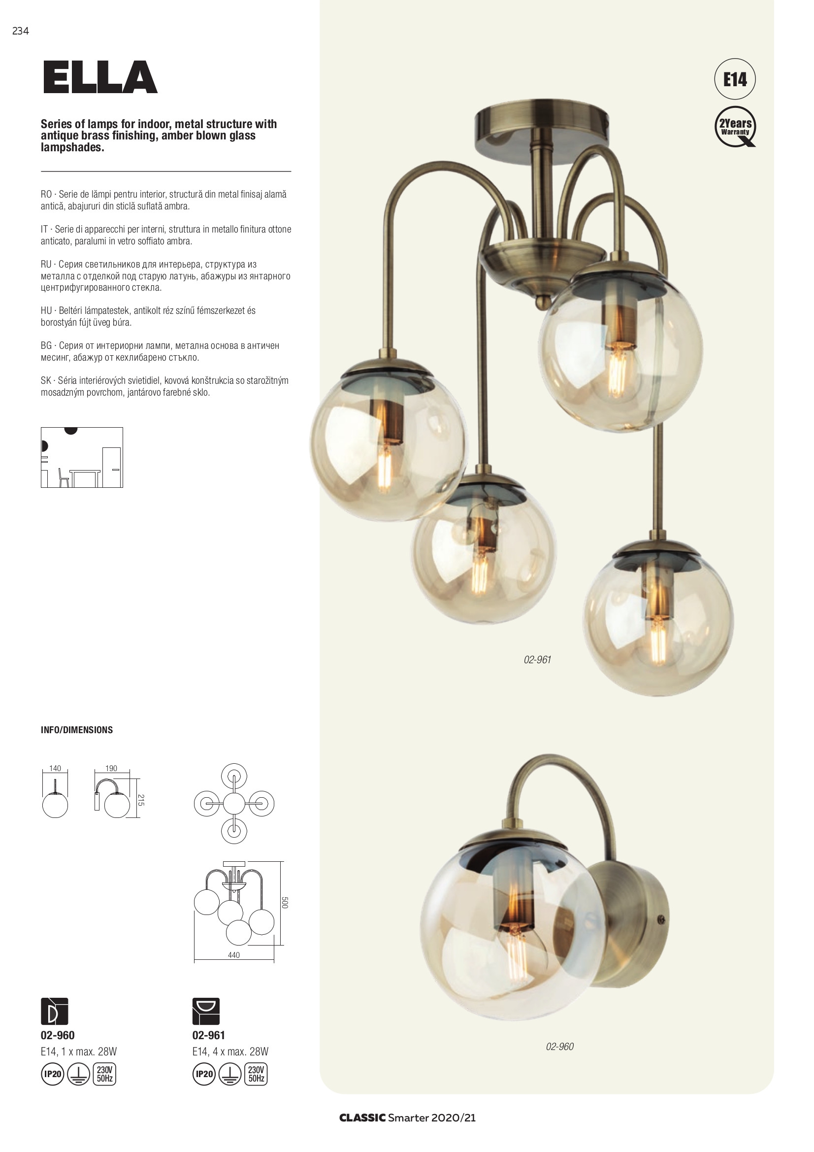 За стила и естетиката на интериора допринасят, както цялостната визия и дизайн на осветителното тяло, така и вложените от производителя в изработката висококачествени материали, като метал в цвят античен месинг, стъкло в цвят кехлибар.