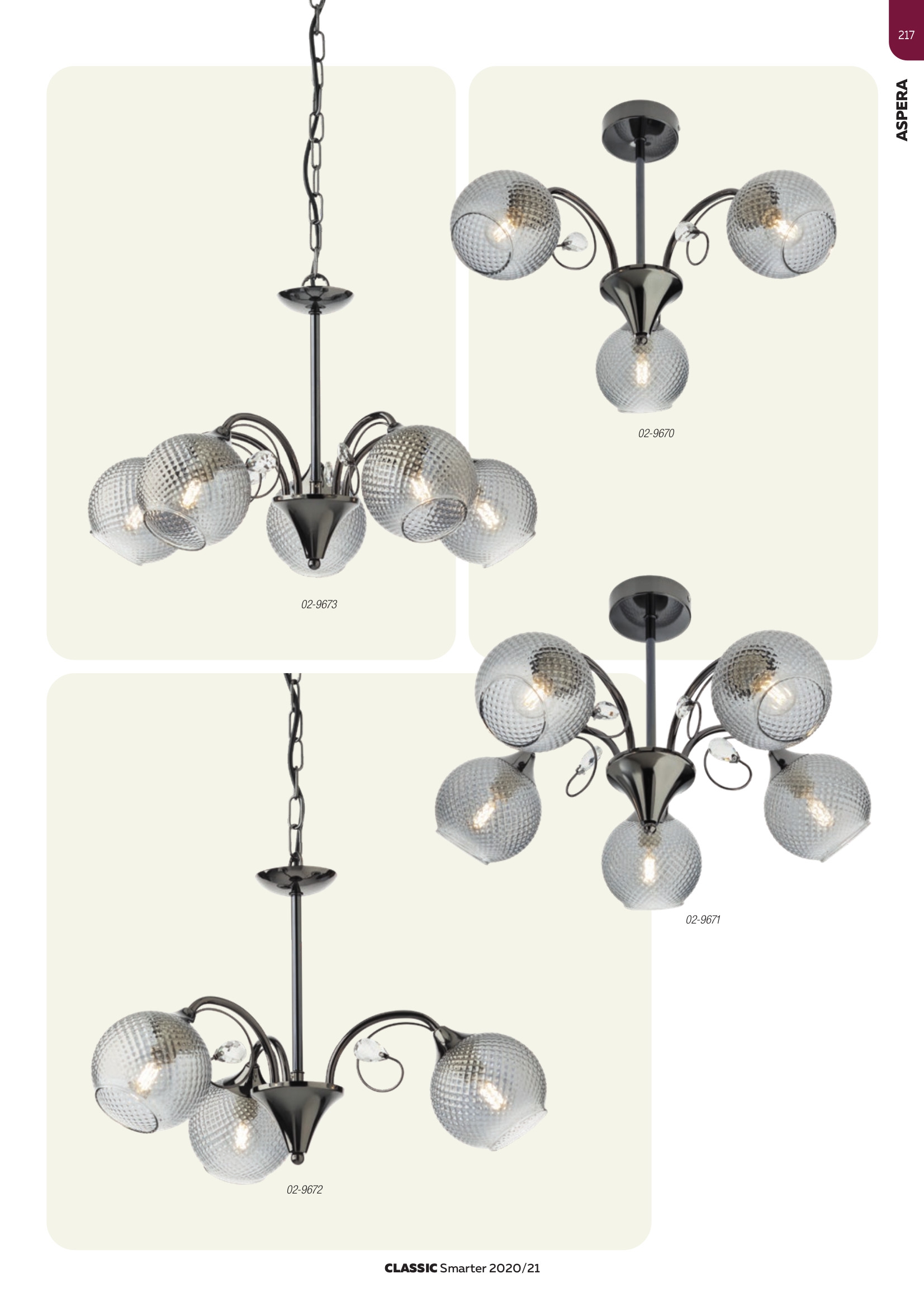 За стила и естетиката на интериора допринасят, както цялостната визия и дизайн на осветителното тяло, така и вложените от производителя в изработката висококачествени материали, като метал в тъмен хром (gun metal), прозрачен стъклен орнамент, абажури от опушено стъкло.