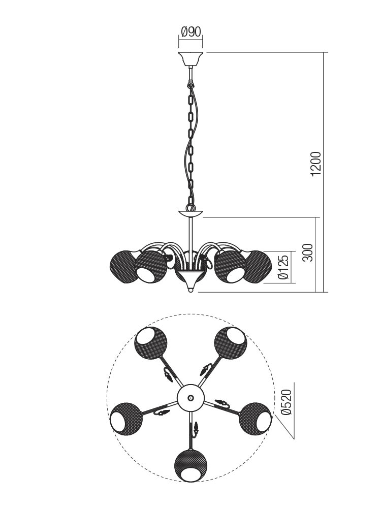 Ел. мощност 5 х 28 W Размери Ф52см x 32.5см Производител Redo, Румъния