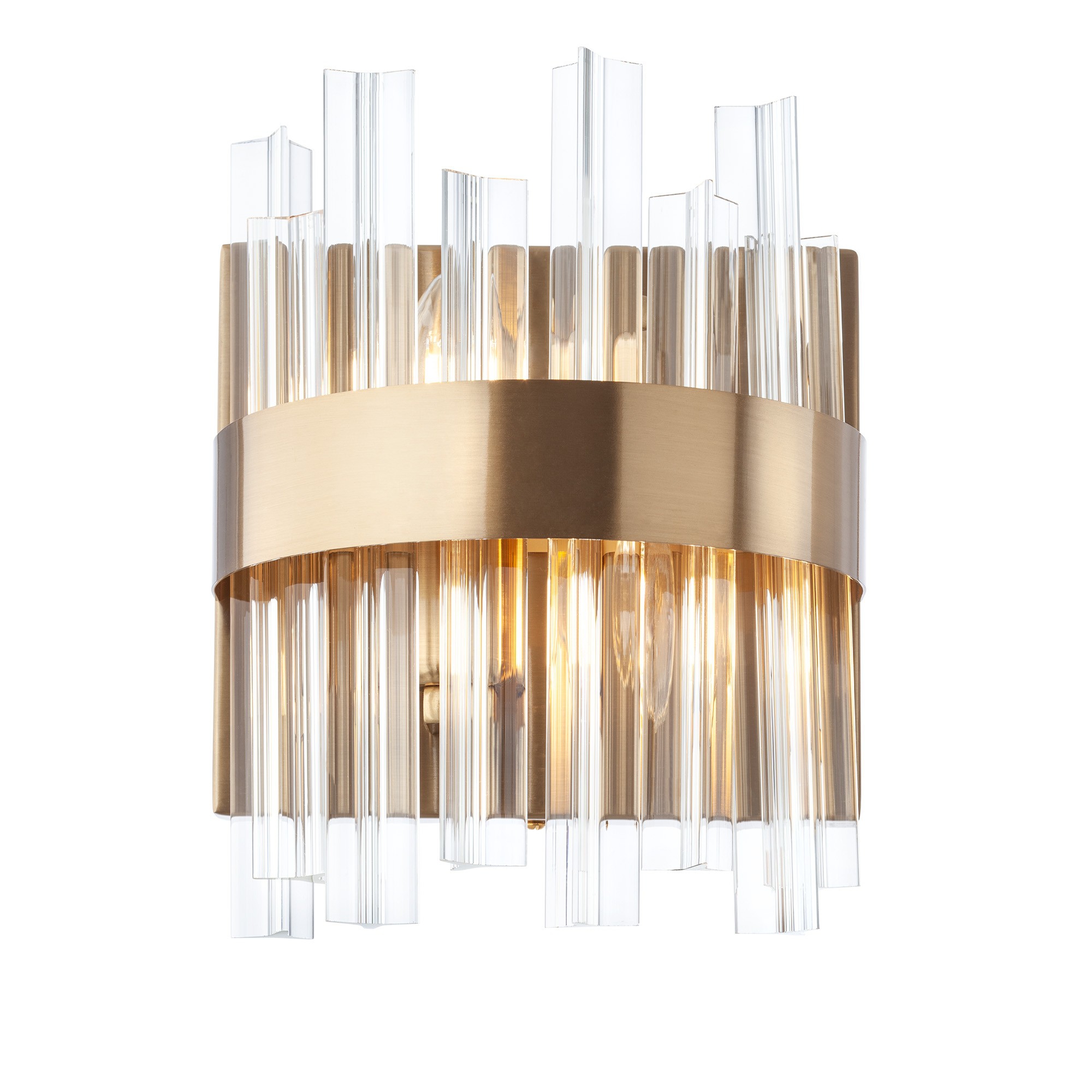 метална конструкция с покритие от патинирана мед, декоративни ламели от прозрачно стъкло