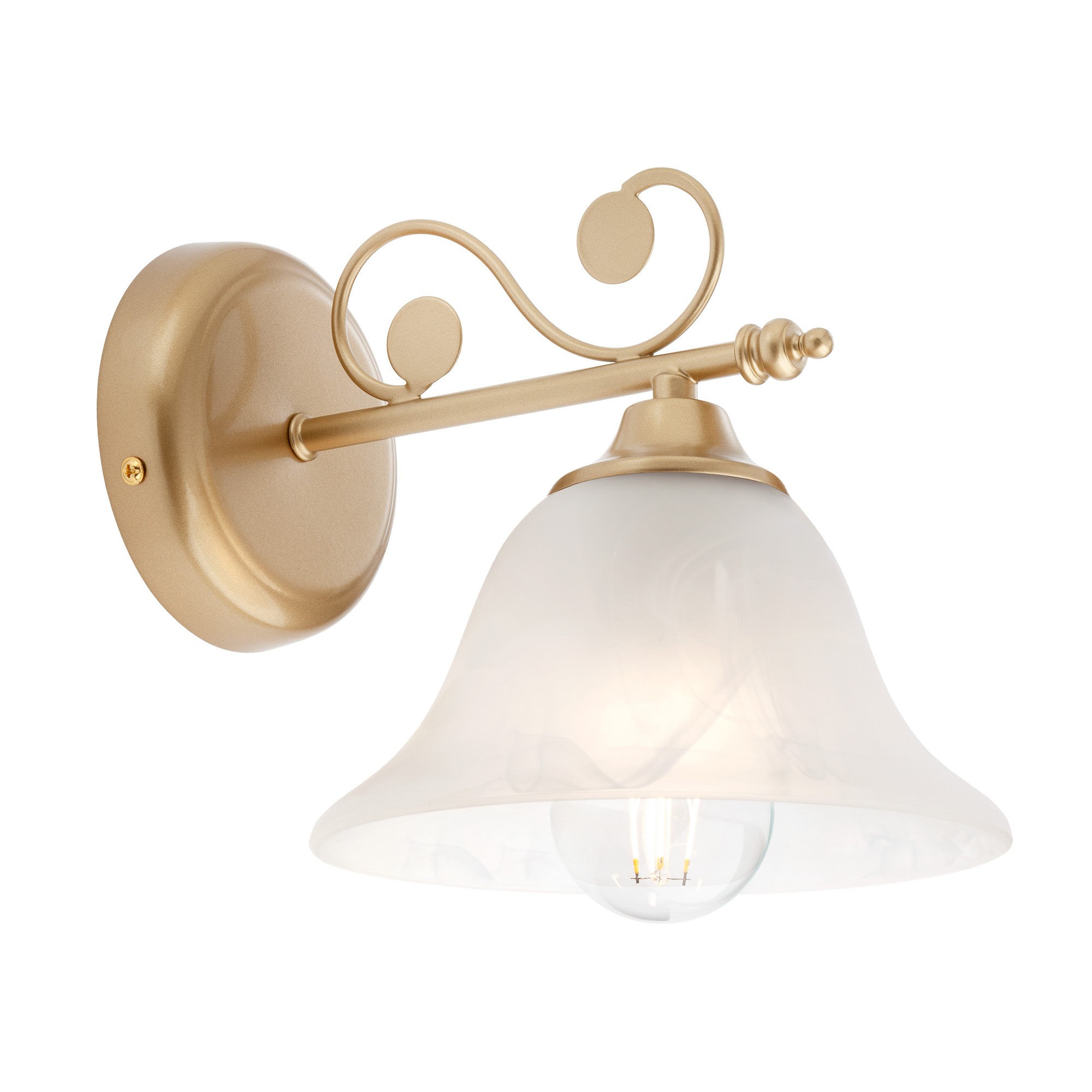 метал в цвят матово злато, абажур от бяло стъкло