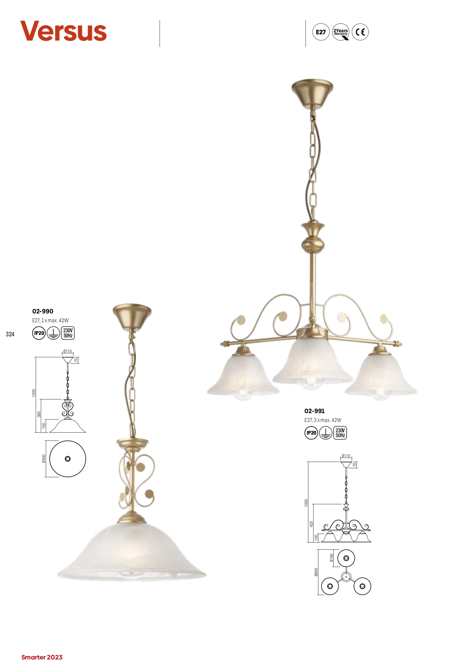 Осветителното тяло 02-990 ще осигури комфорт и естетика във всяко помещение, в което се постави. Цялостната визия и дизайн на лампата и вложените в изработката й материали, като метал в цвят матово злато, абажур от бяло стъкло, ще допринесат за един неповторим стил. Благодарение на дългогодишния опит, качествените материали и строгия контрол на качеството на изработка на дизайнерската линия Redo Smarter на производителя Redo (Румъния), 02-990 е на високо европейско ниво.