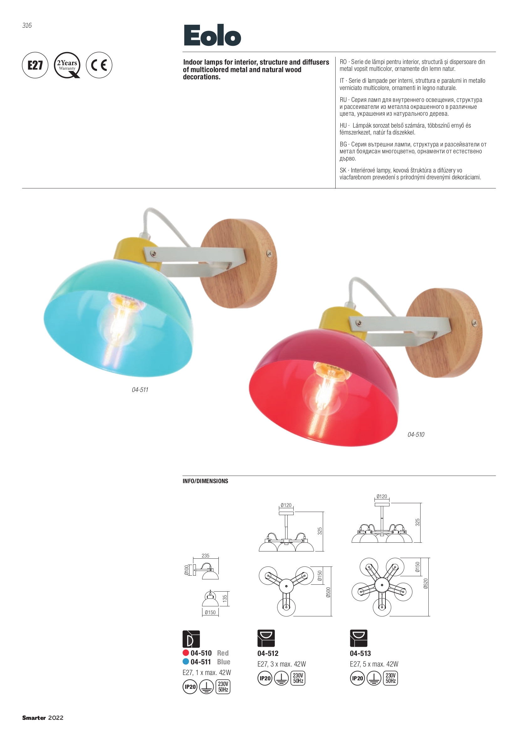 Осветителното тяло 04-510 ще осигури комфорт и естетика във всяко помещение, в което се постави. Цялостната визия и дизайн на лампата и вложените в изработката й материали, като метал в червен цвят, метал в бяло, орнаменти от естествено дърво, ще допринесат за един неповторим стил. Благодарение на дългогодишния опит, качествените материали и строгия контрол на качеството на изработка на дизайнерската линия Redo Smarter на производителя Redo (Румъния), 04-510 е на високо европейско ниво.