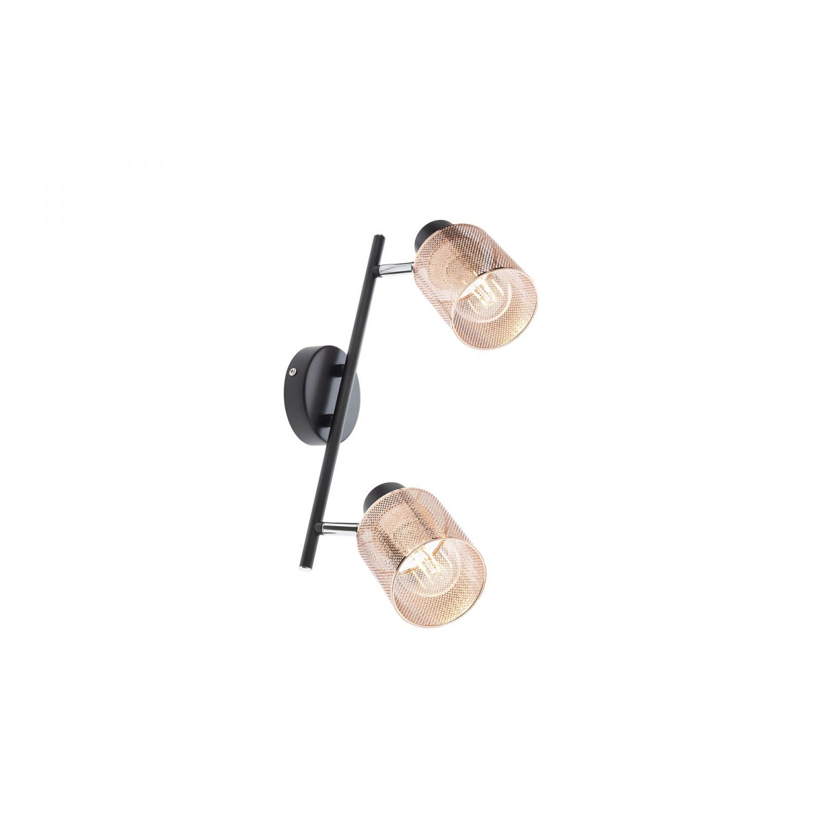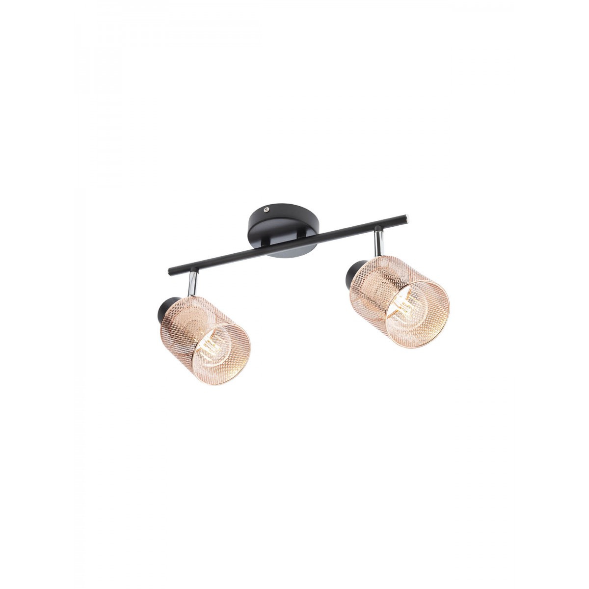 метал в цвят черен мат, хромирани детайли, абажури от перфориран метал в цвят розово злато