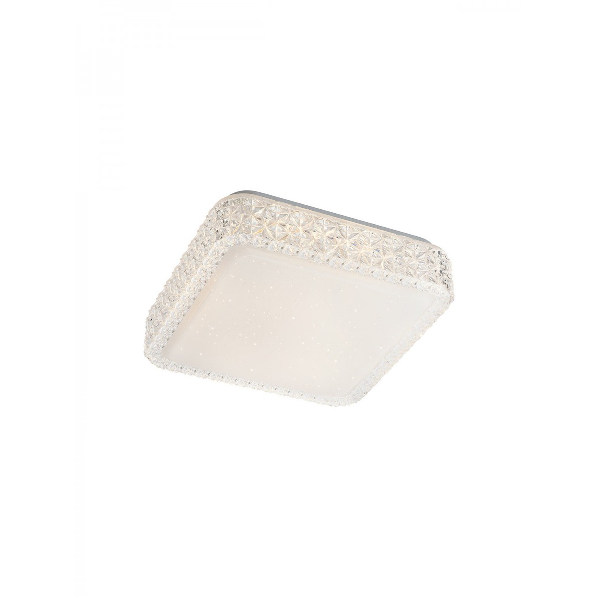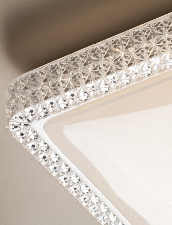 метал в бял цвят, корниз от фасетиран прозрачен акрил, дифузер от полимер в бяло с ефект проблясъци