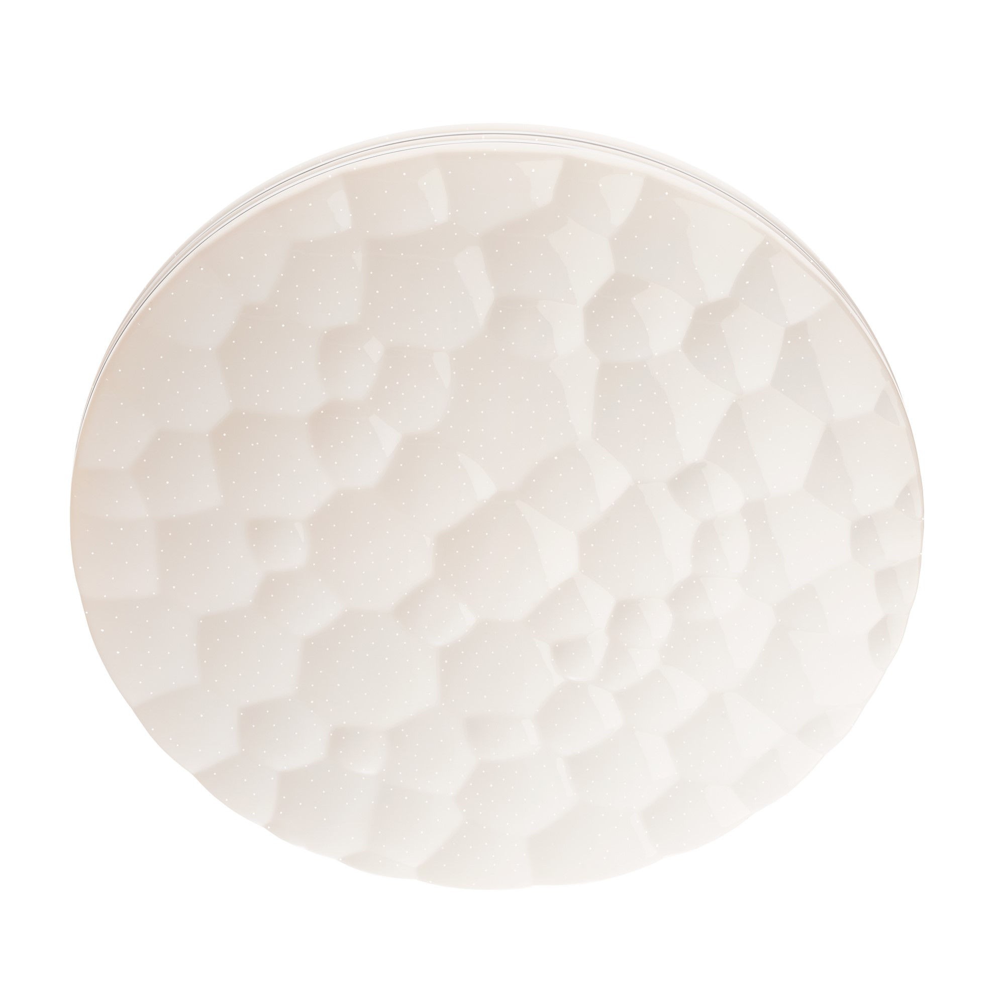матово бял метал, дифузьор от полиран опал метакрилат с хромиран орнамент, дистанционно управление (включени 2 AAA батерии), 5 програми, регулиране интензитета на светлината, промяна на цветовата температура, RGB, система за управление TUYA, нощен режим