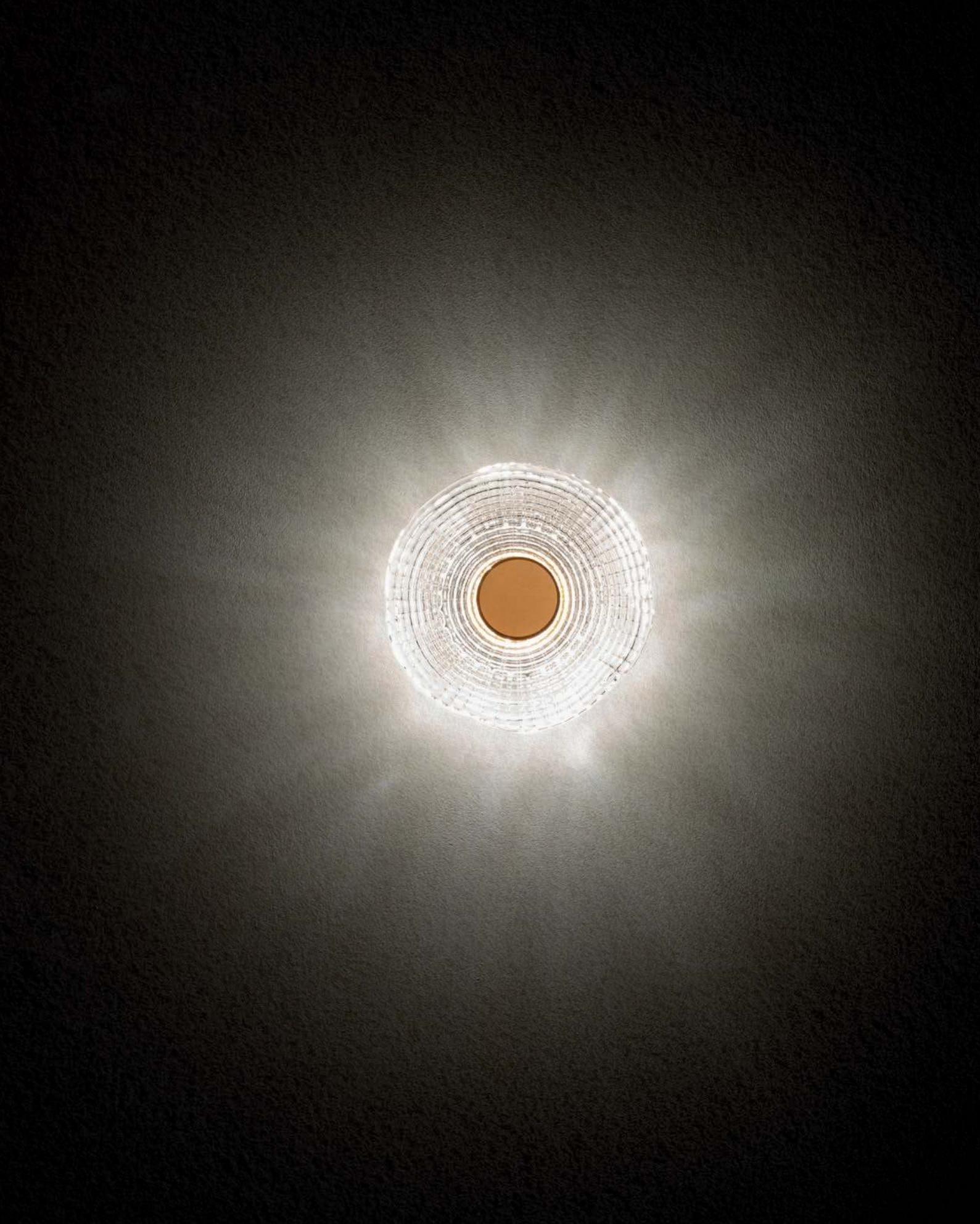 Лед аплик 05-967 ще осигури комфорт и естетика във всяко помещение, в което се постави. Цялостната визия и дизайн на led лампата и вложените в изработката й материали, като метал в матово златисто, дифузер от прозрачно релефно стъкло - ръчна изработка, ще допринесат за един неповторим стил. Благодарение на дългогодишния опит в производството на лед осветление, качествените материали и строгия контрол на качеството на изработка на дизайнерската линия Redo Smarter на производителя Redo (Румъния), 05-967 е на високо европейско ниво.