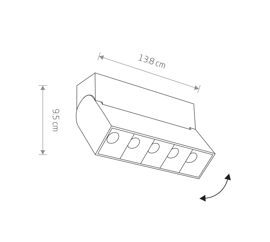 алуминий в бял цвят, светлоотразители в черно, осветителното тяло може да се насочва