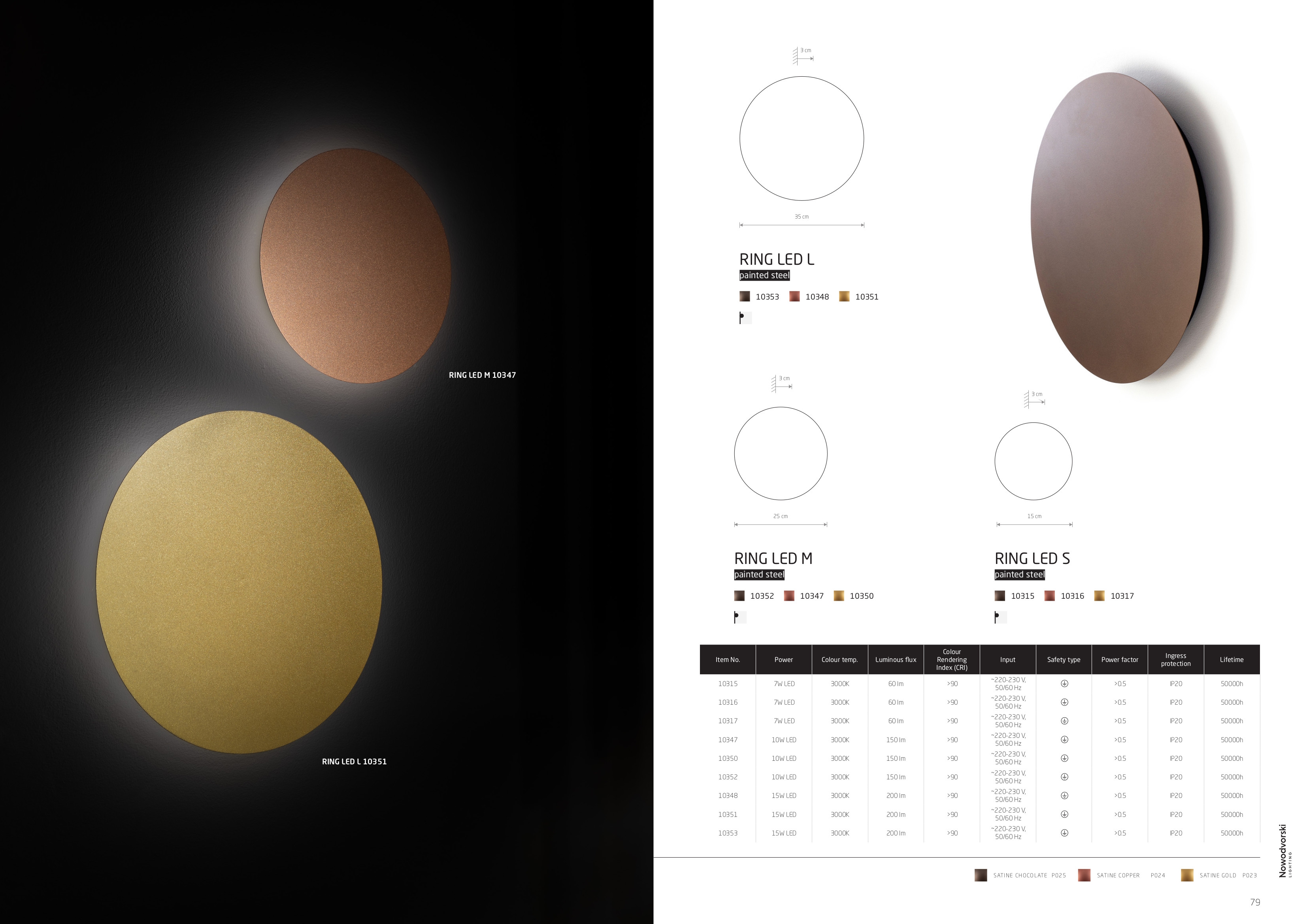 Лед аплик 10352 RING COCOLATE LED M ще осигури комфорт и естетика във всяко помещение, в което се постави. Цялостната визия и дизайн на led лампата и вложените в изработката й материали, като стомана в цвят сатениран шоколад, ще допринесат за един неповторим стил. Благодарение на дългогодишния опит в производството на лед осветление, качествените материали и строгия контрол на качеството на изработка на производителя Nowodvorski (Полша), 10352 RING COCOLATE LED M е на високо европейско ниво.